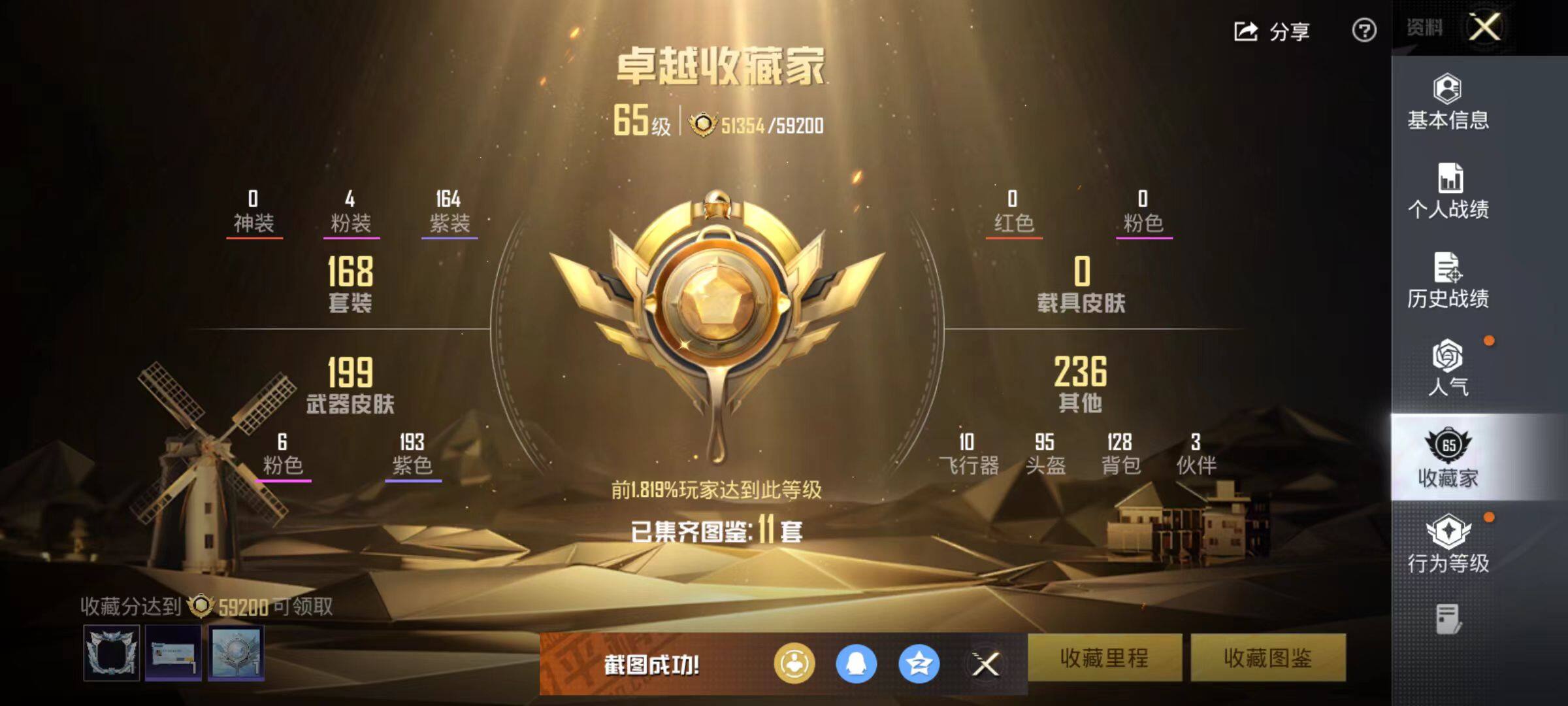 168套装/枪械6/装备261/战备172/王牌印记17/热力值69005/五