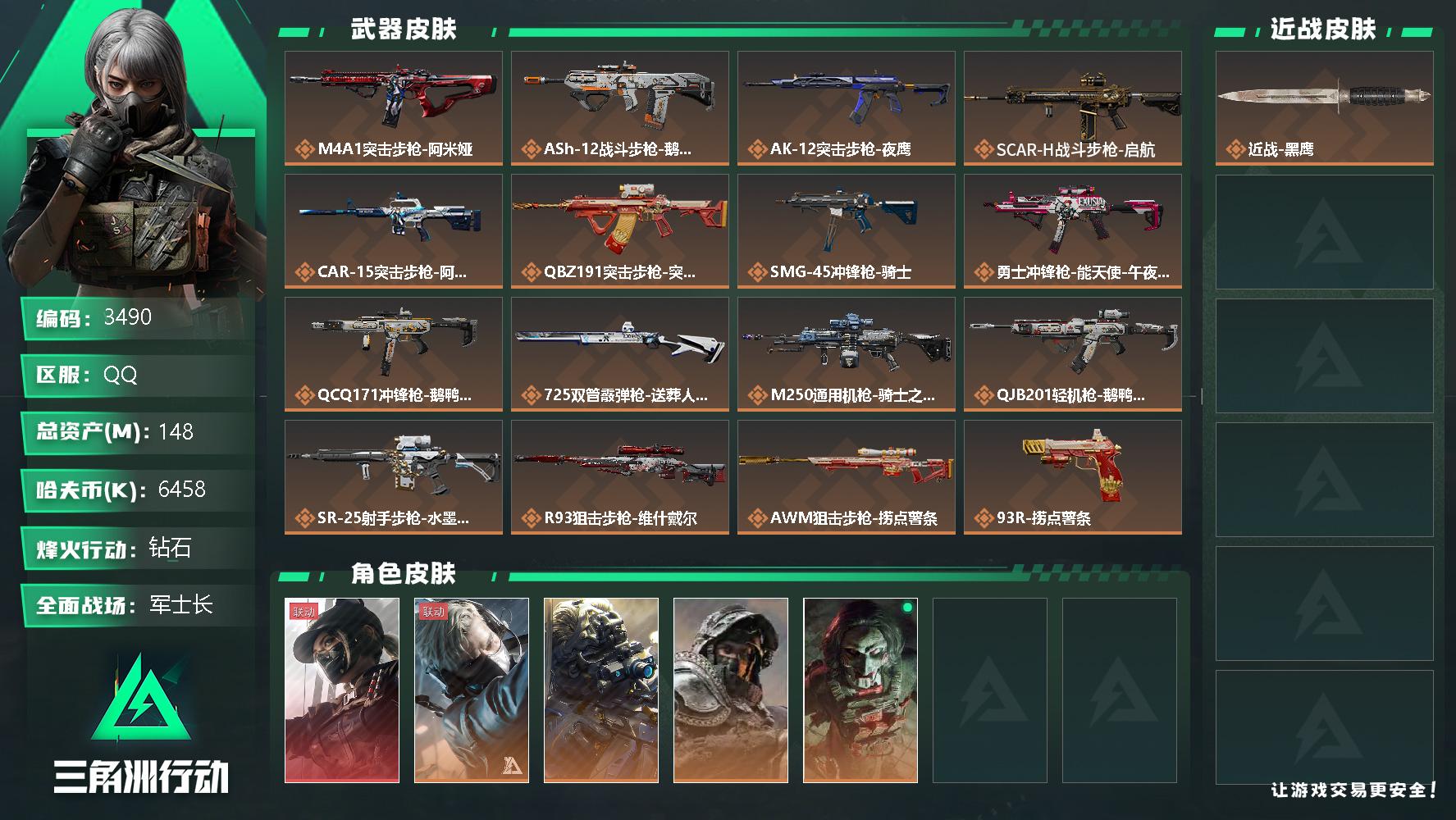 总资产148.2m 流动资产100.2m 哈夫币6458k 1刀皮 1红皮 4金皮 顶级安全箱 仓库