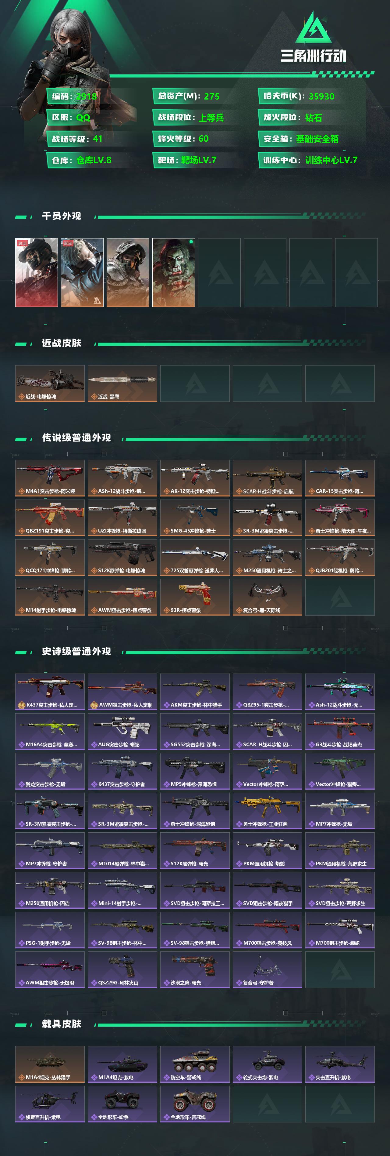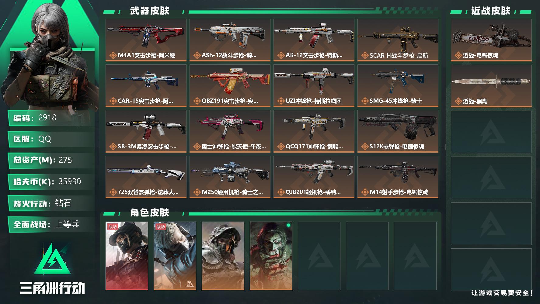 总资产275m 2干员皮 1红皮 1刀 黑天际线 电锯惊魂 基础安全箱 仓库lv8