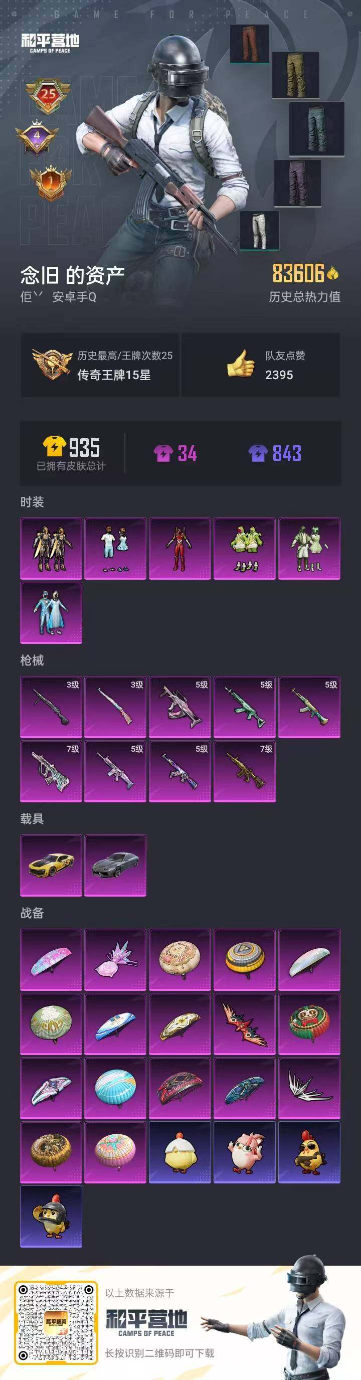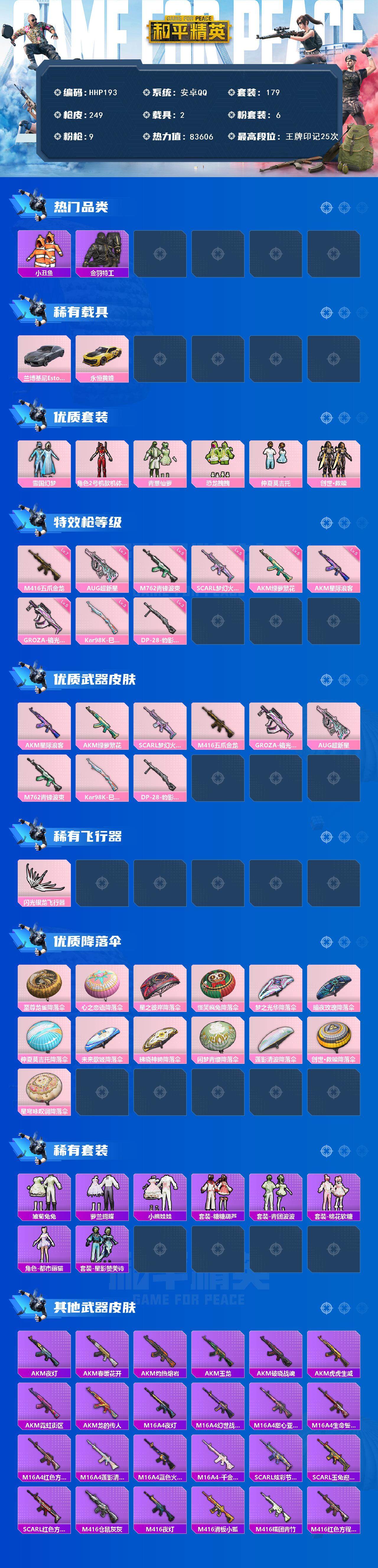 179套装/枪械9/装备311/载具2/战备194/王牌印记25/热力值83606/五级AKM-星际
