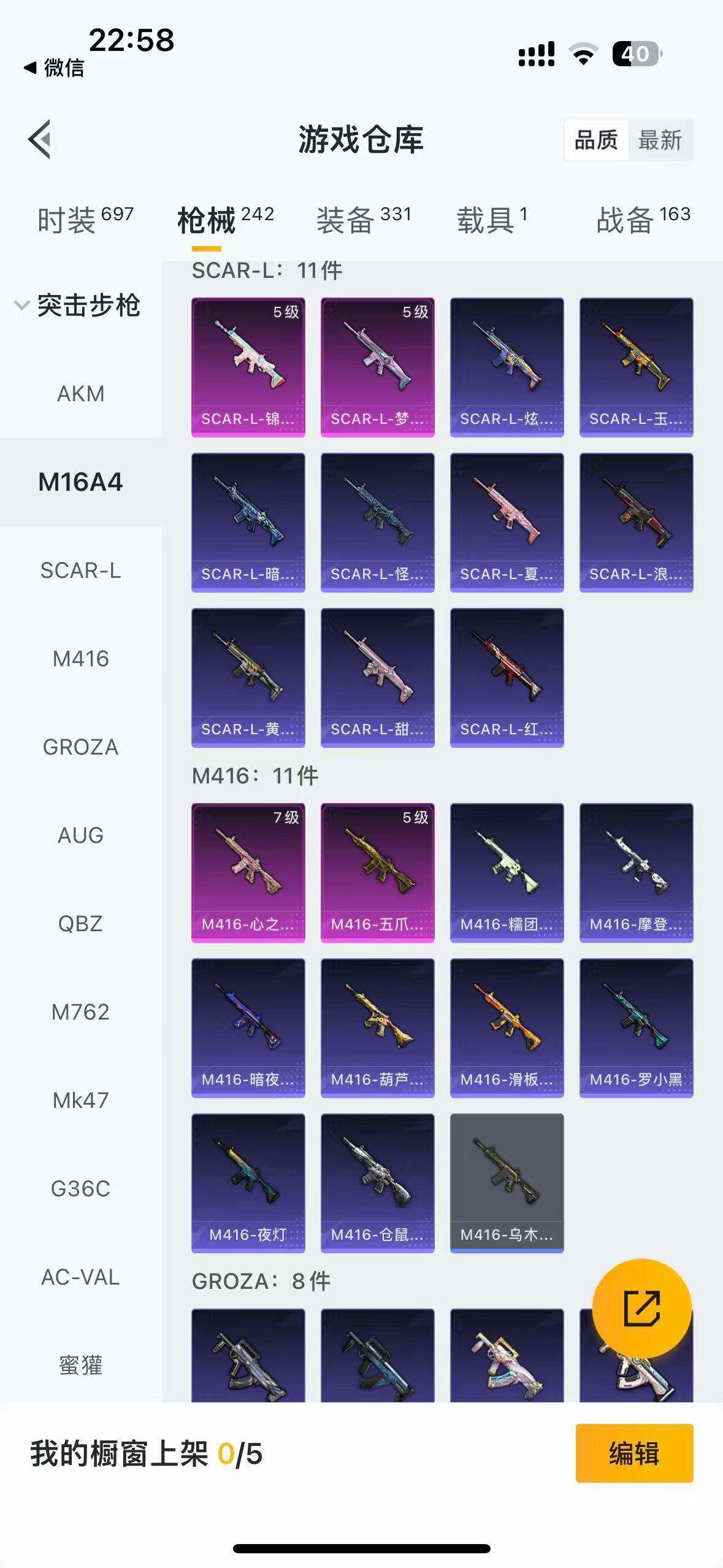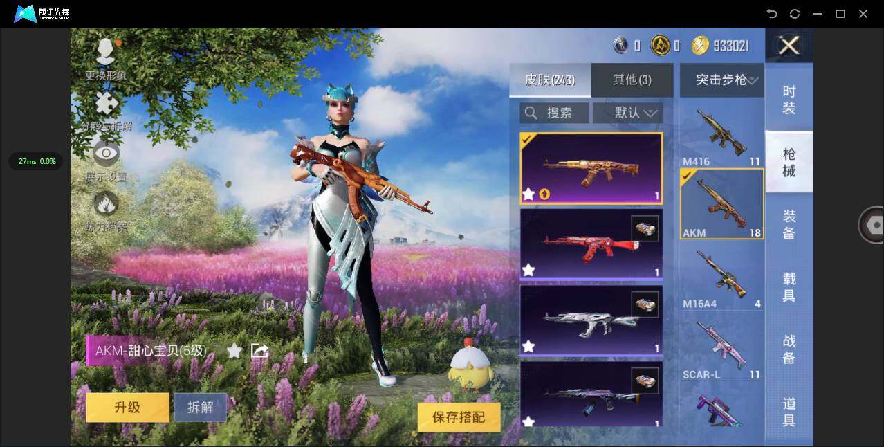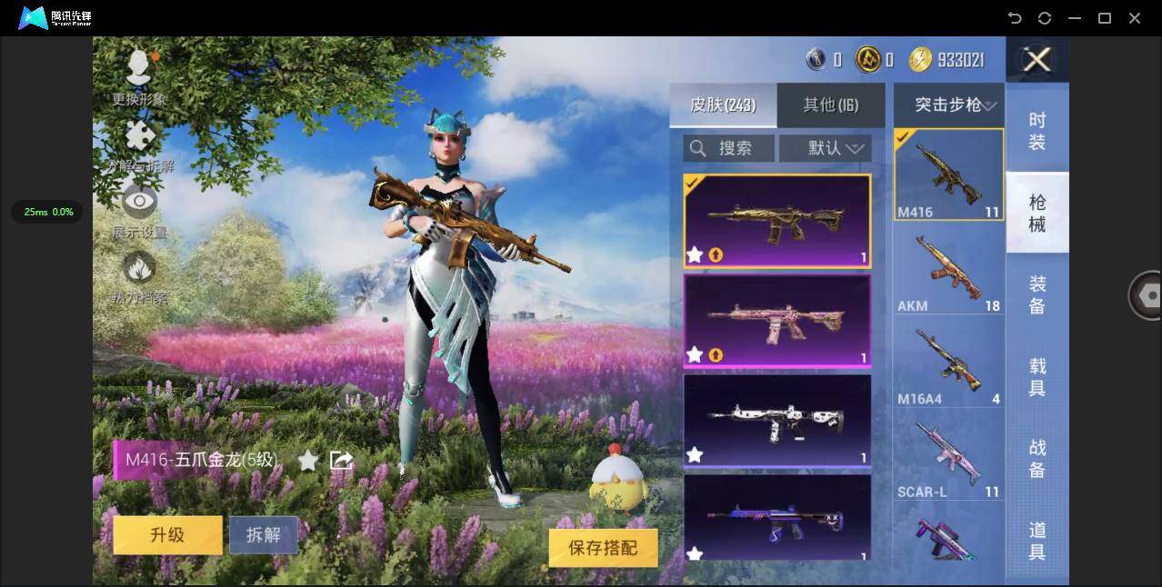 时装数: 697 载具数: 1 枪械数: 242 战备数: 163 热门装扮: 奇异狩猎者,梦幻火箭(新101),甜心巧克力,呆萌铁蟹,数码大师,深海小丑鱼,天启纪元,宝贝奶油派,天使彩虹糖,梦魇先生,迅捷狂鲨,好奇恐龙,甜蜜誓约,绚金战神,俏皮狐尾,甜梦冰蝶,暗夜玫瑰,吟月归客,S1赛事上衣,蜀山剑侠-李逍遥,潮萌小黄鸭,大橘为重,浪客战士,暗夜魅影,猪猪侠 载具: 玛莎拉蒂Ghibli(粉)
