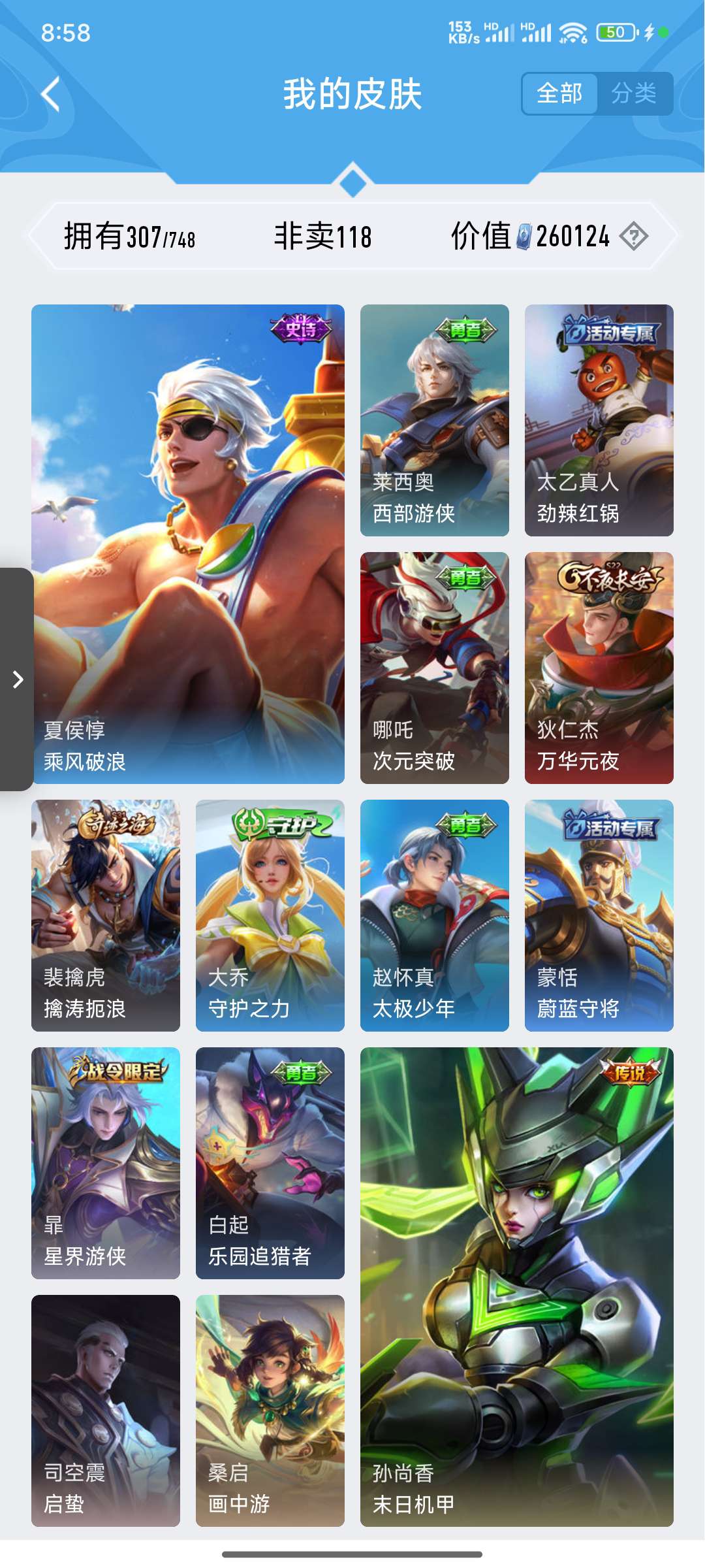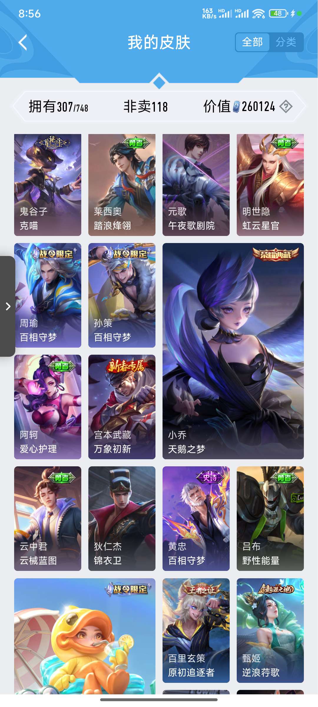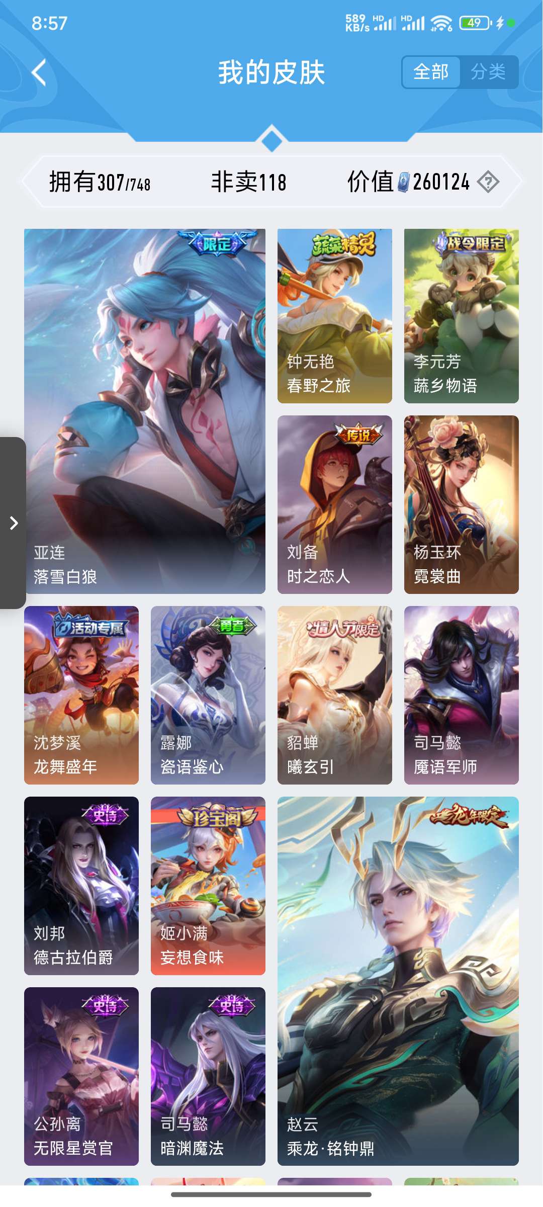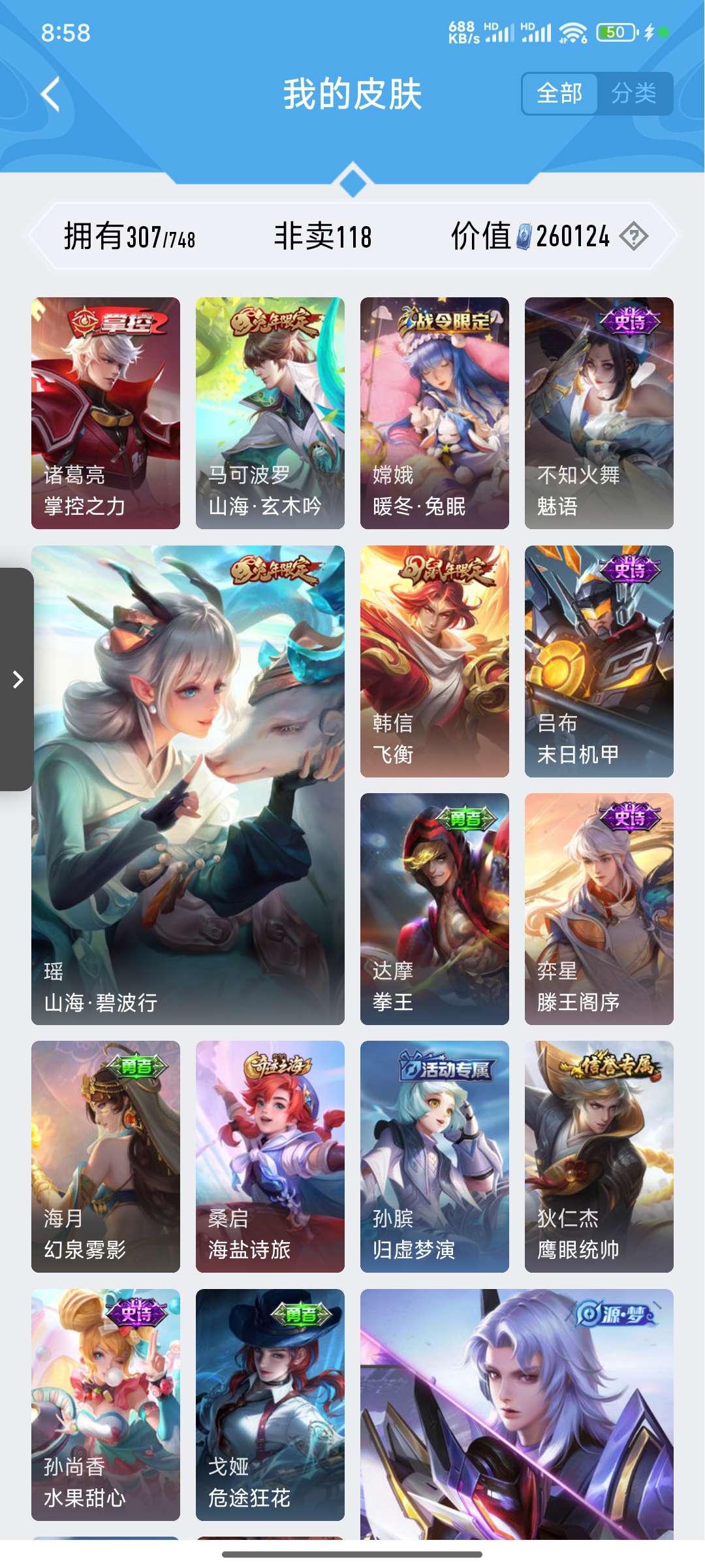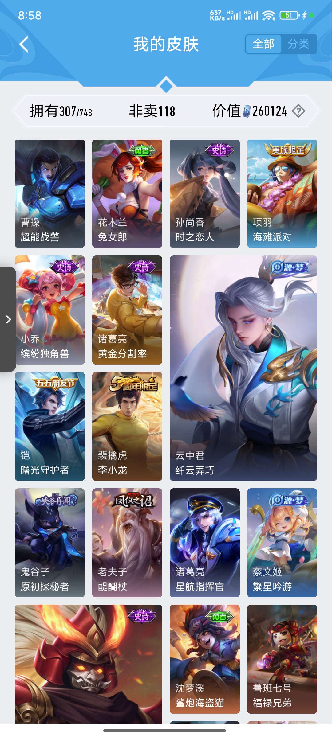 皮肤307 英雄127 荣耀王者 荣耀典藏2 无双皮肤2 珍品传说1 传说24 其他皮肤116-贵九,诸葛全皮带星传说,万战金标诸葛亮,三金标
