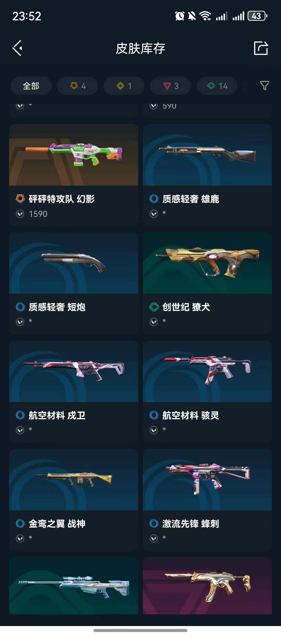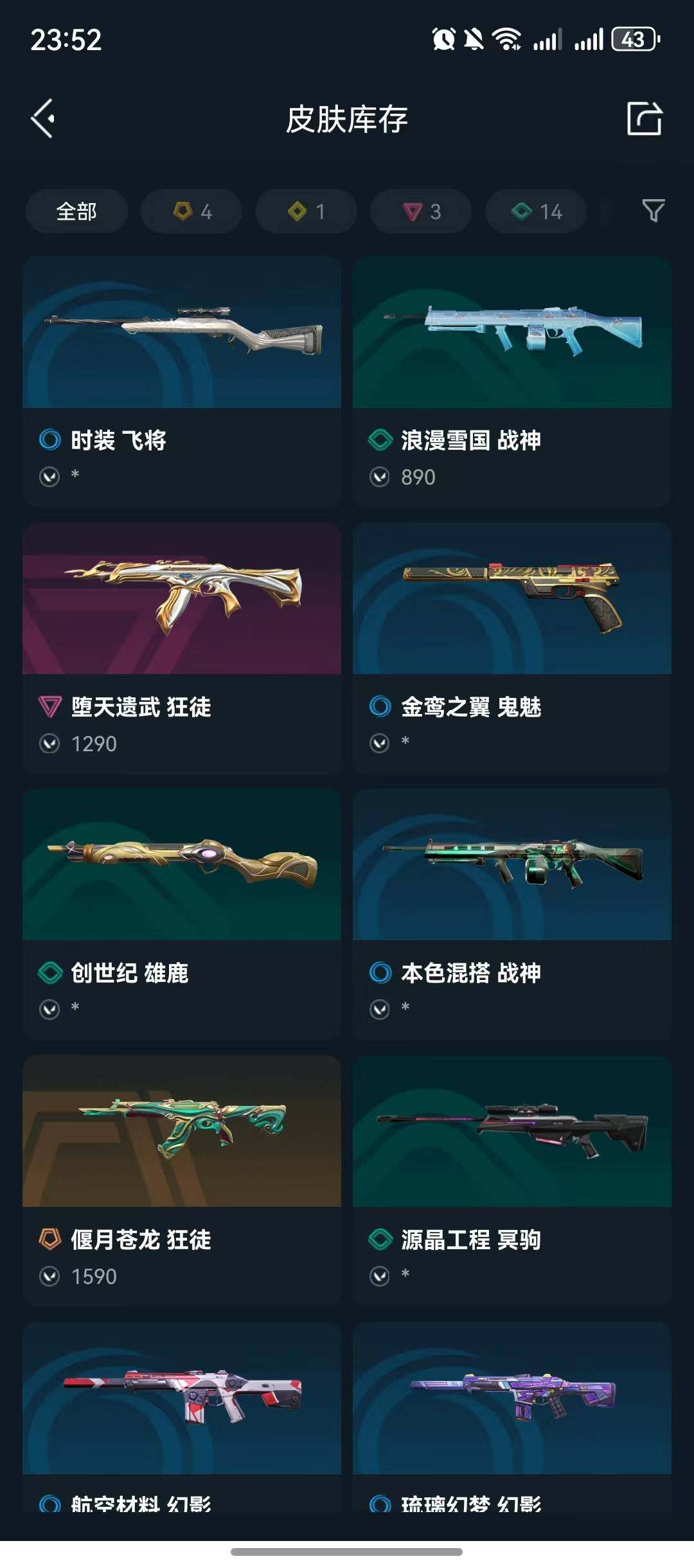 【狂徒】:狂徒-堕天遗武,狂徒-偃月苍龙,狂徒-极速光追【幻影】:幻影-砰砰