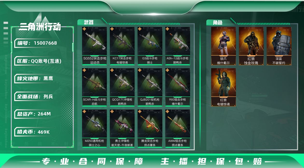 总资产(M):264M/哈夫币(K):469K/哈夫币(K):469K/全面战场等级:11_段位:列
