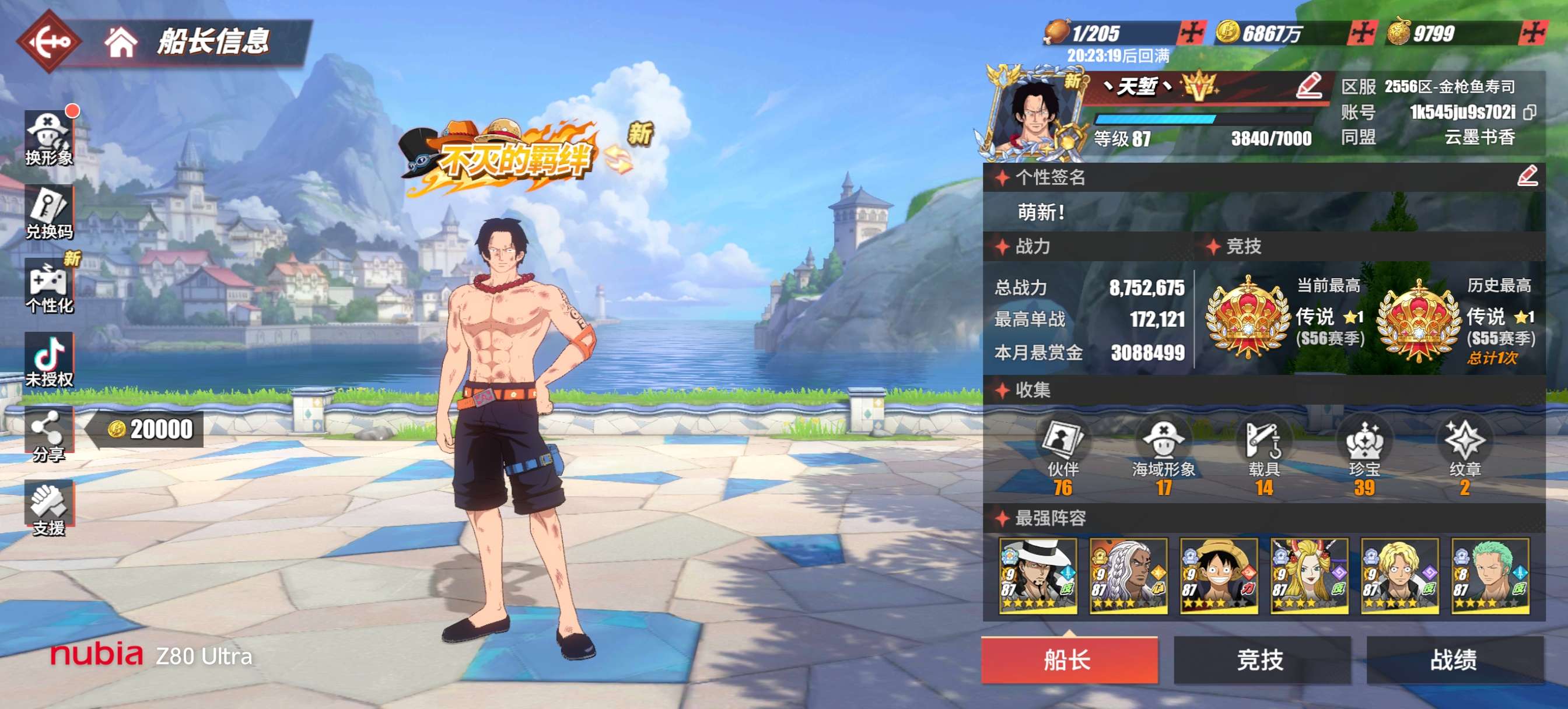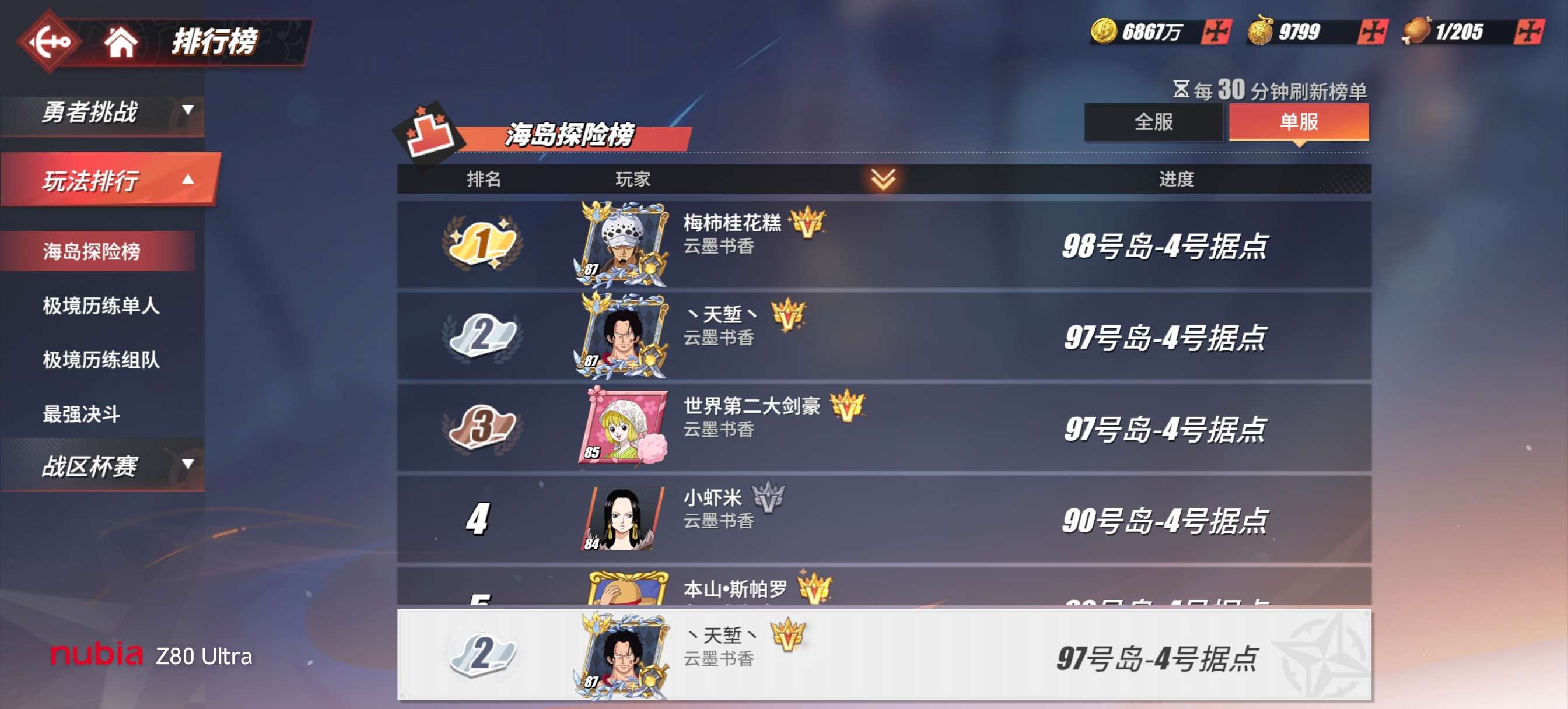 高招小两百张 最新角色都有 四星起步 电话虫四个 岛97 四皇图鉴 满探索 公会活跃度高