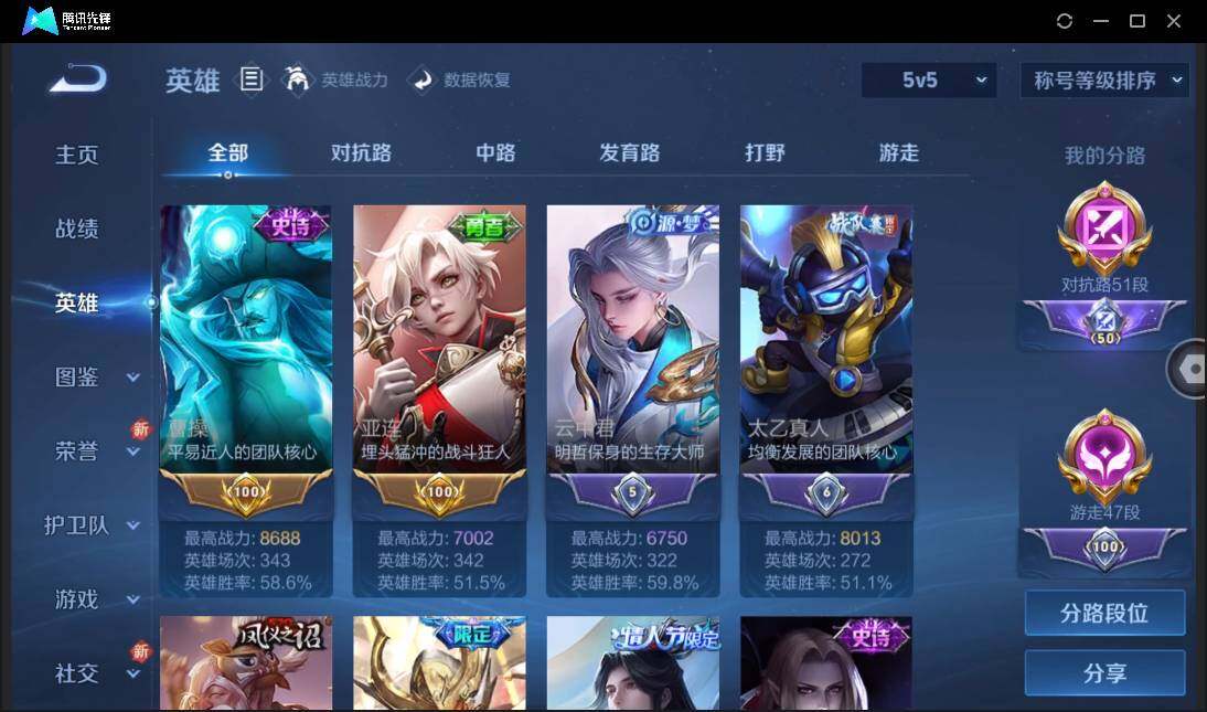 【W4457】3万战-10金标-对抗路51段-游走47段-安卓QQ-无二次-贵