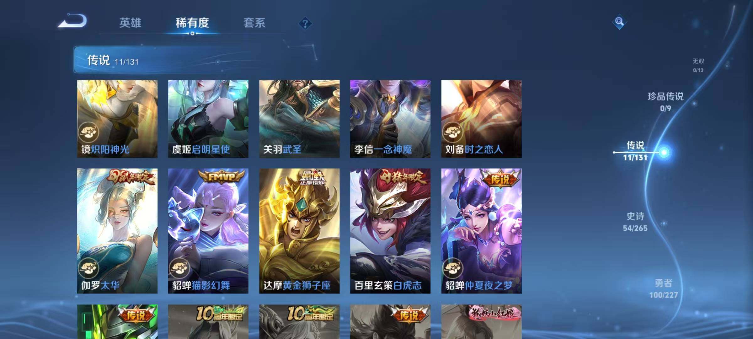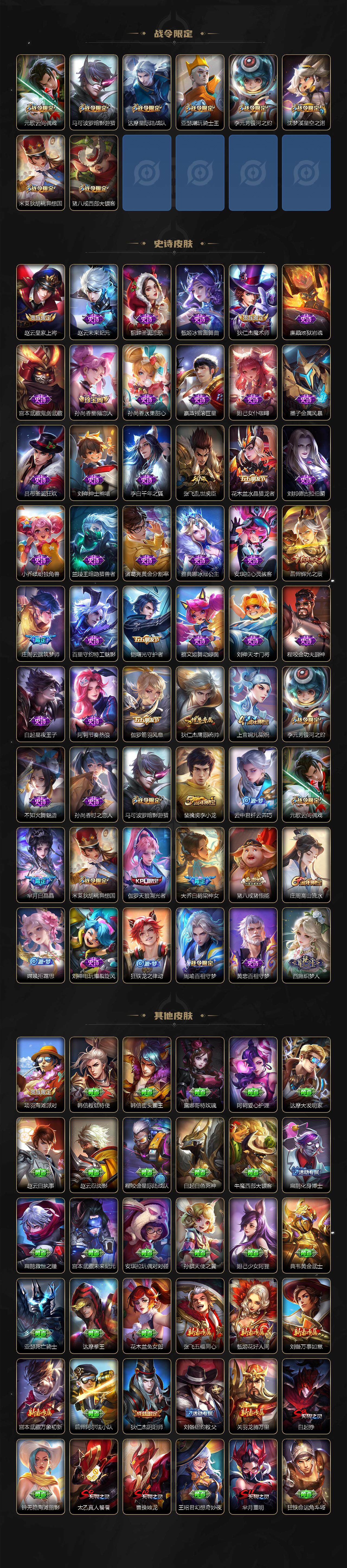 皮肤213 英雄125 非凡王者 荣耀典藏1 传说11 其他皮肤84-
