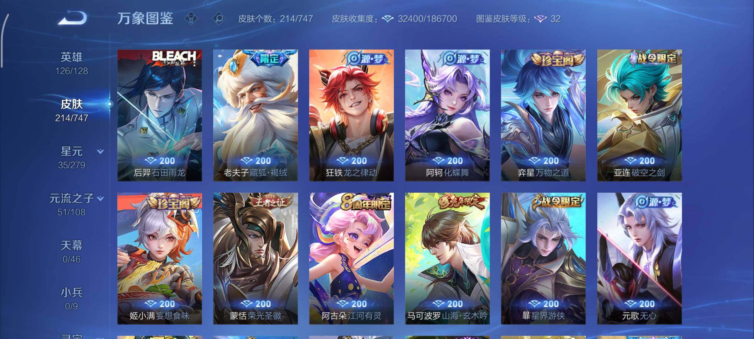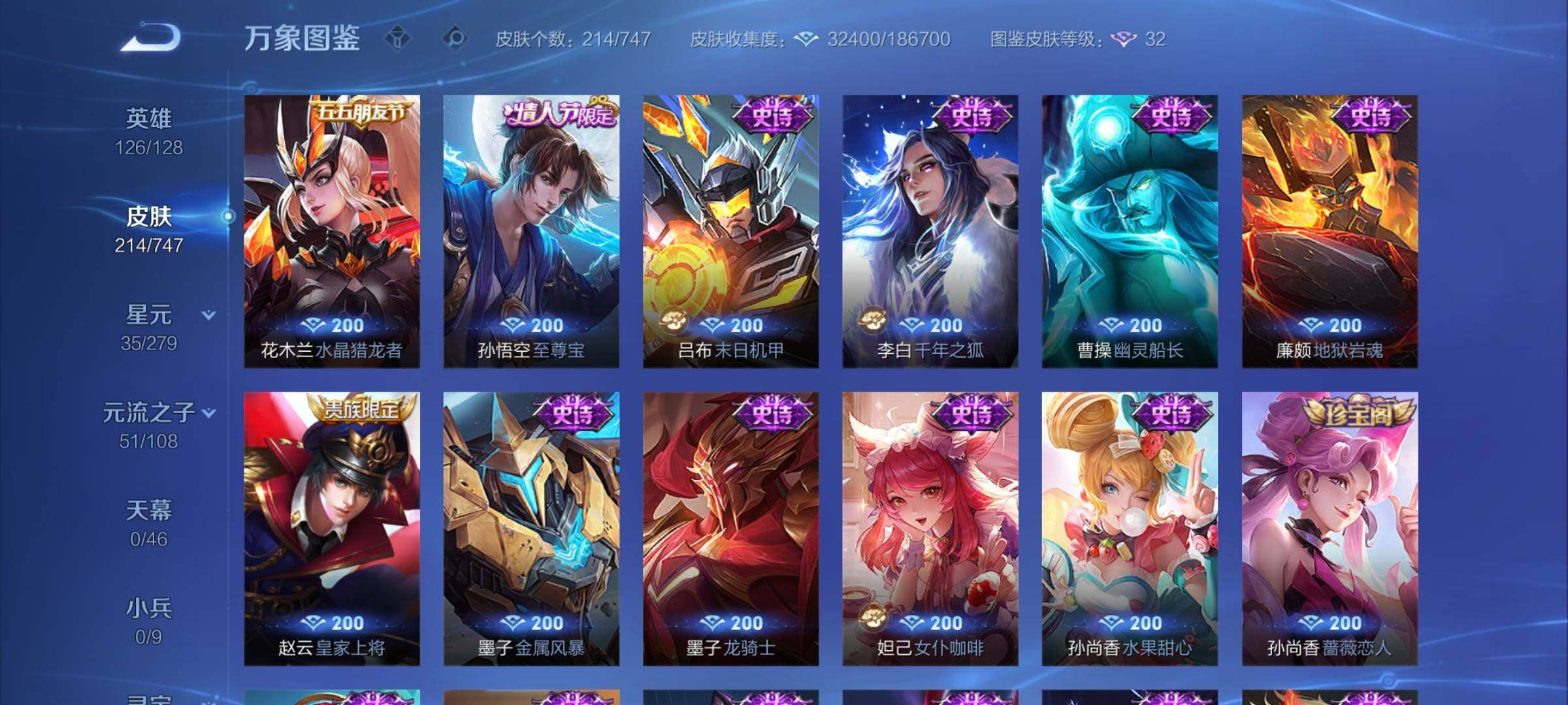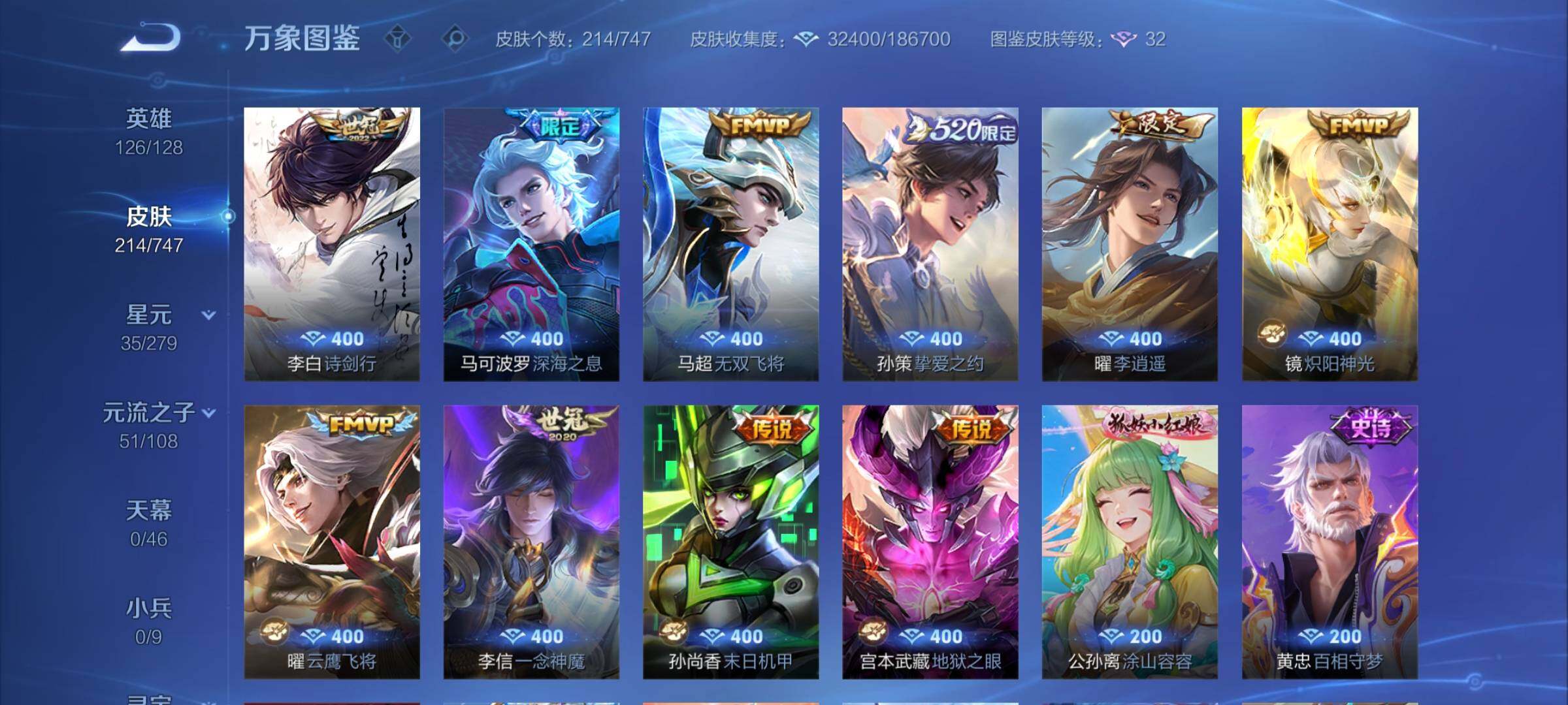 可换绑【性价比优质号 浮生妄 兔年曜 520孙策 李逍遥 多传说限定质量号】 幸运值343 7按键,2星传说,5王者印记,五级铭文150,可二次CD15557,安卓Q-V7-214皮肤-1珍品传说-21传说-60史诗【英雄全皮】:鬼谷子全皮,夏洛特全皮【珍品传说】:安琪拉酷洛米之心【星元皮肤】:宫本武藏幽冥之眼,孙尚香未来机甲【传说皮肤】:后羿神树通天,公孙离云诺