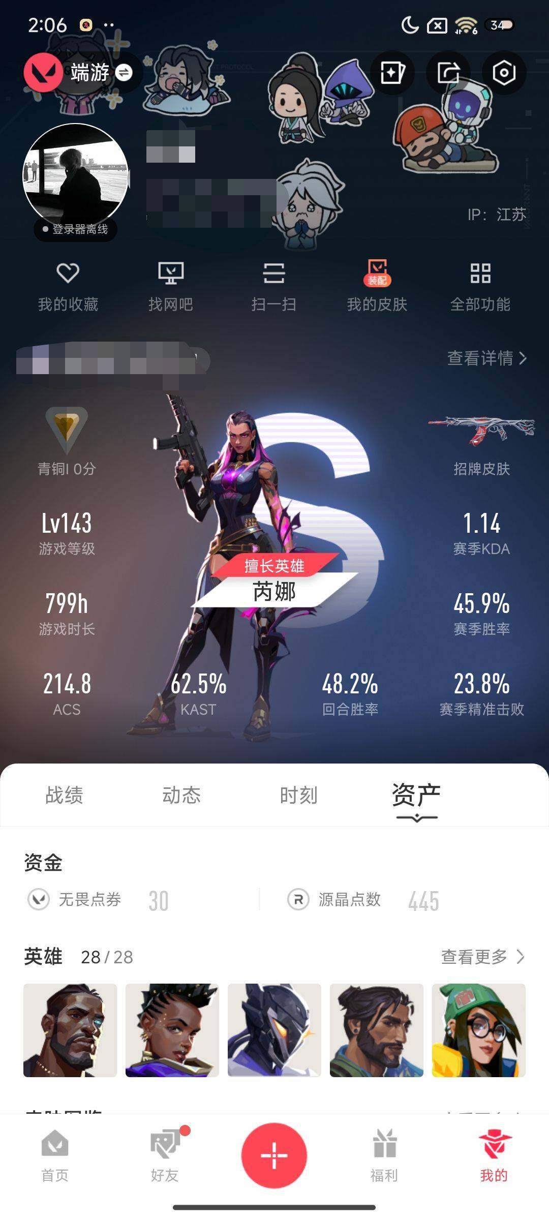 终极*12/卓越*2/皮肤*63/等级*143/段位:青铜/