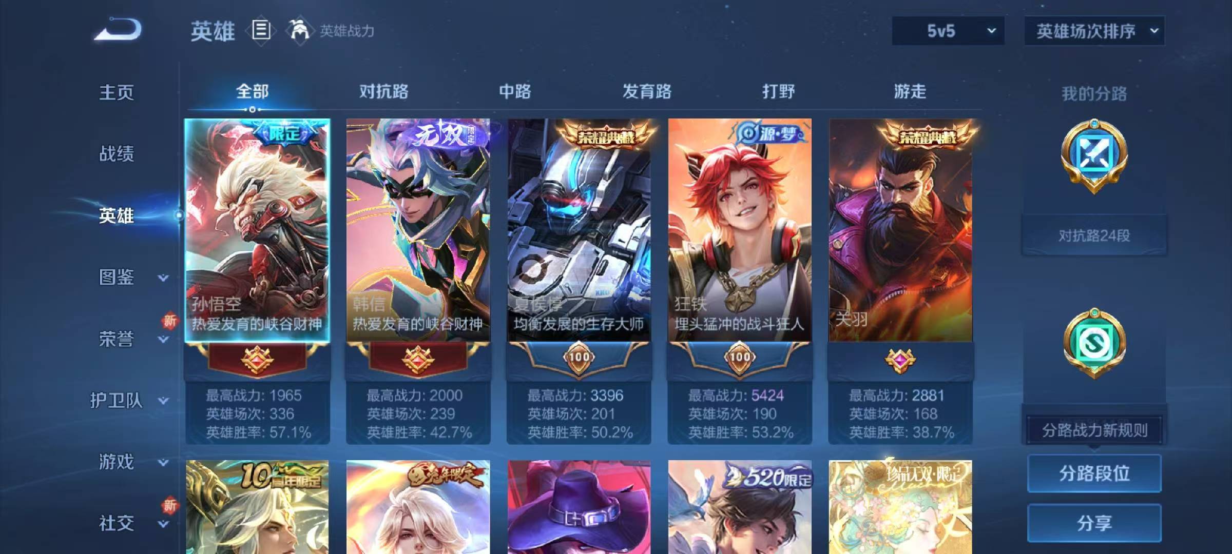 安卓QQ/荣耀王者/289皮肤/127英雄/3典藏/1珍品无双/2无双/0珍品传说/24传说/78史