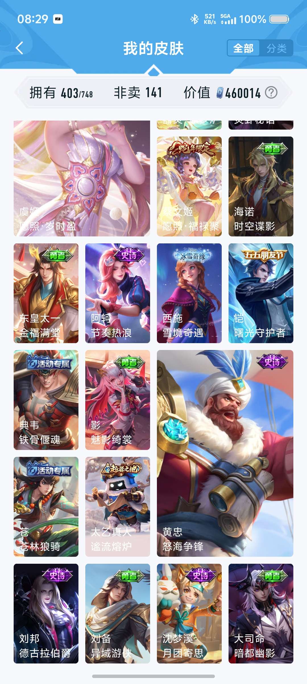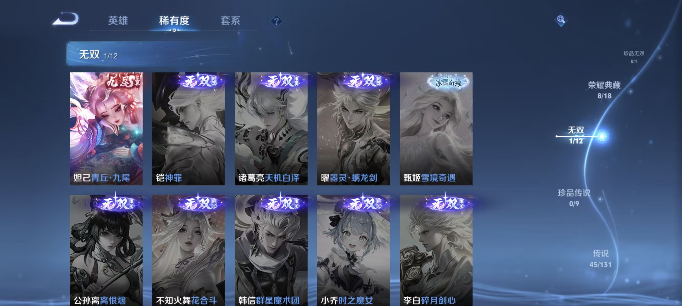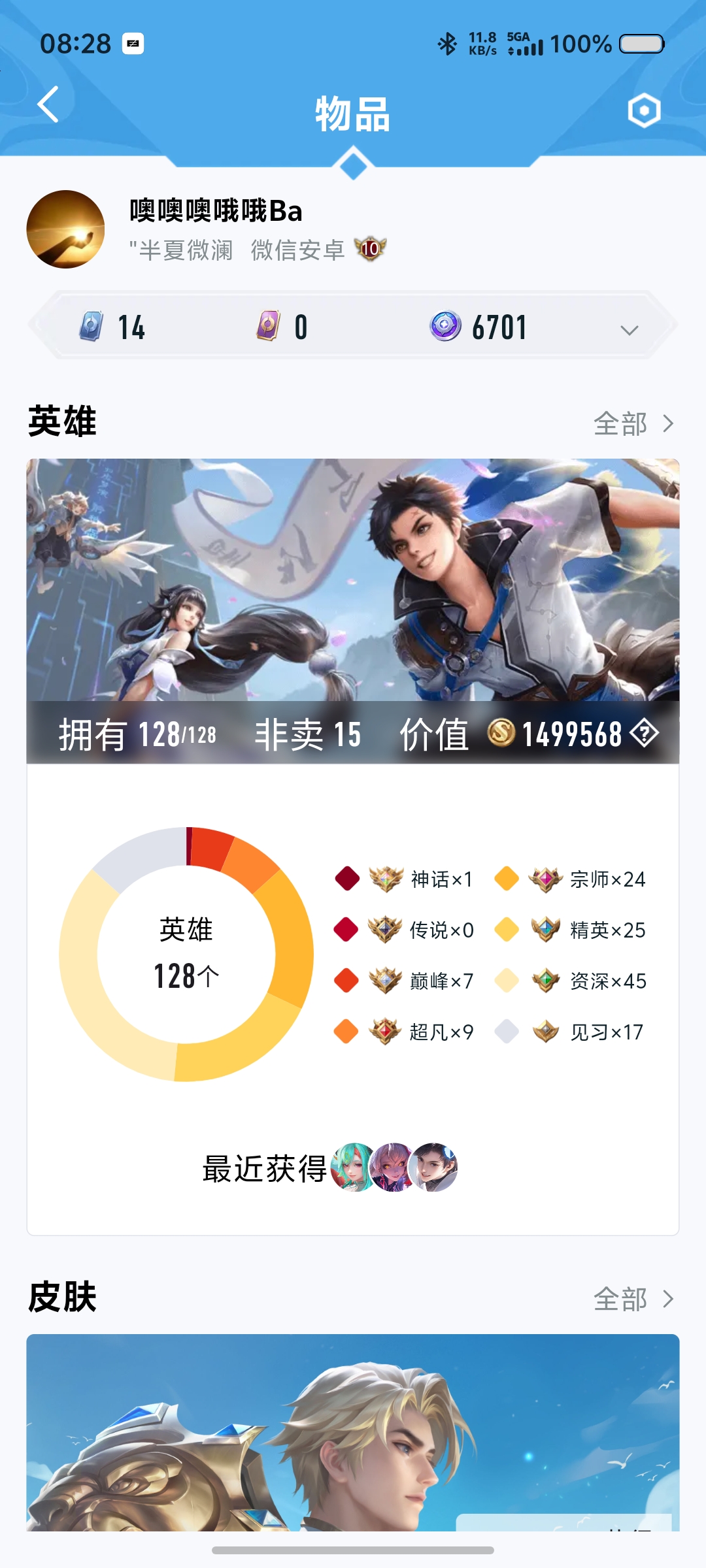 皮肤403英雄128荣耀典藏8无双皮肤1 传说45其他皮肤156还有40抽出水晶价格可谈罗里吧嗦别来