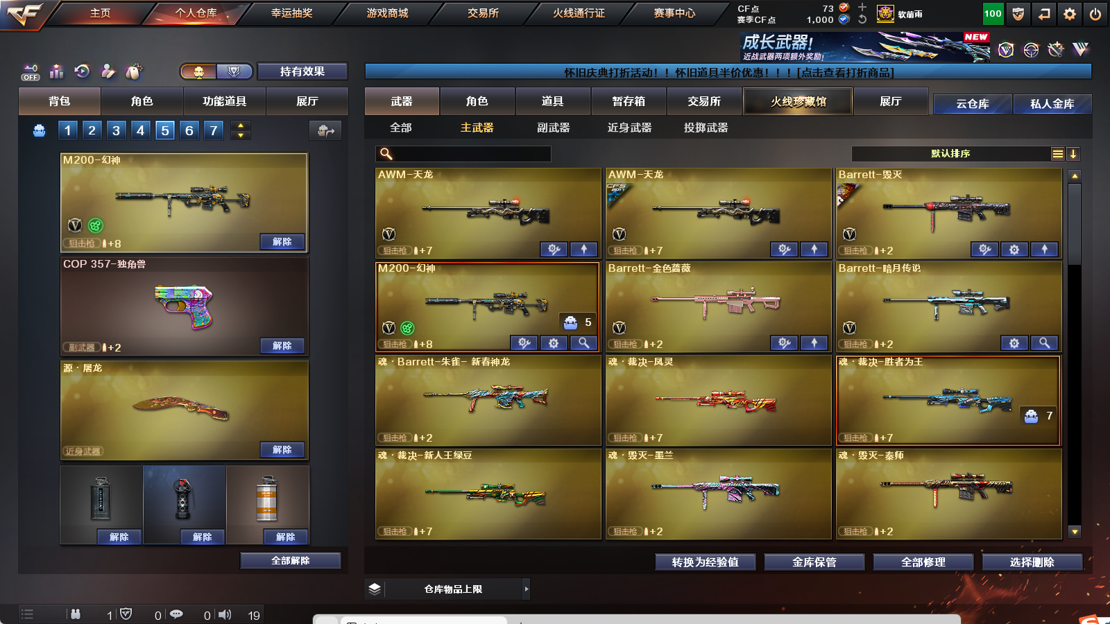 MCF811【河北一区 王者2 炫金1 V19 M200-幻神】【等级】102【区服】河北一区【段位】荣耀之巅【英雄武器】22【王者级武器】王者之啸-觉醒版 王者之幻【炫金级武器】炫金黑龙【英雄级武器】 无影-神兵利器 AK47-火麒麟 M200-幻神 M4A1-雷神 AK47-B-常胜将军 AK47-B-战士 AK47-B-战神 Barrett-暗月传说 AK47-B-身先士卒 黑骑士-海王 Barrett-毁灭 黑骑士-海王 AWM-天龙 沙鹰-修罗 9A91-烈火 AWM-天龙 M4A1