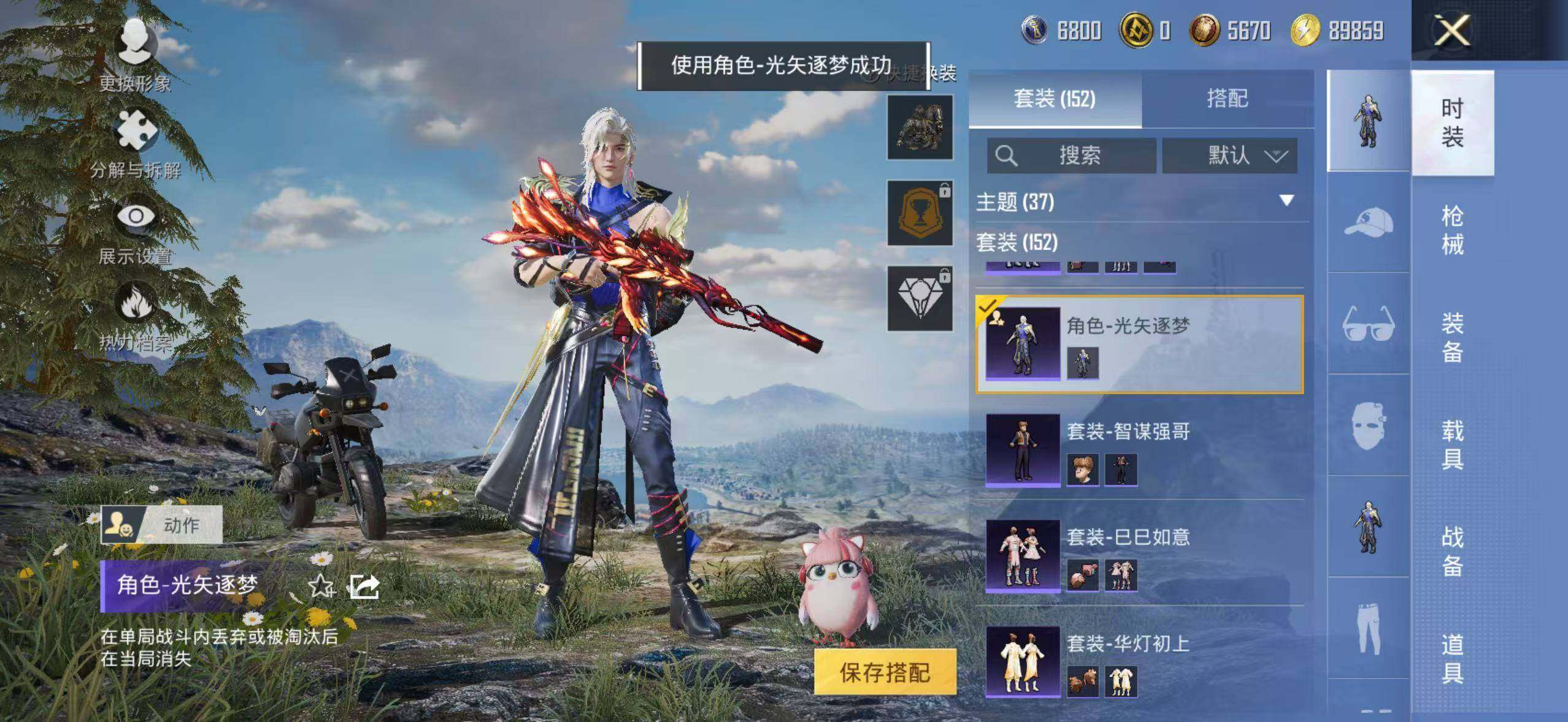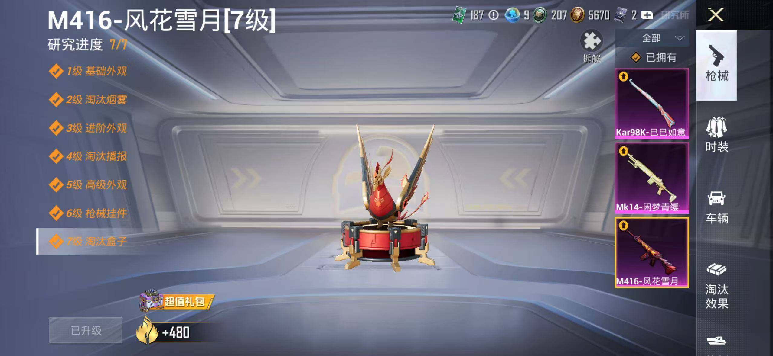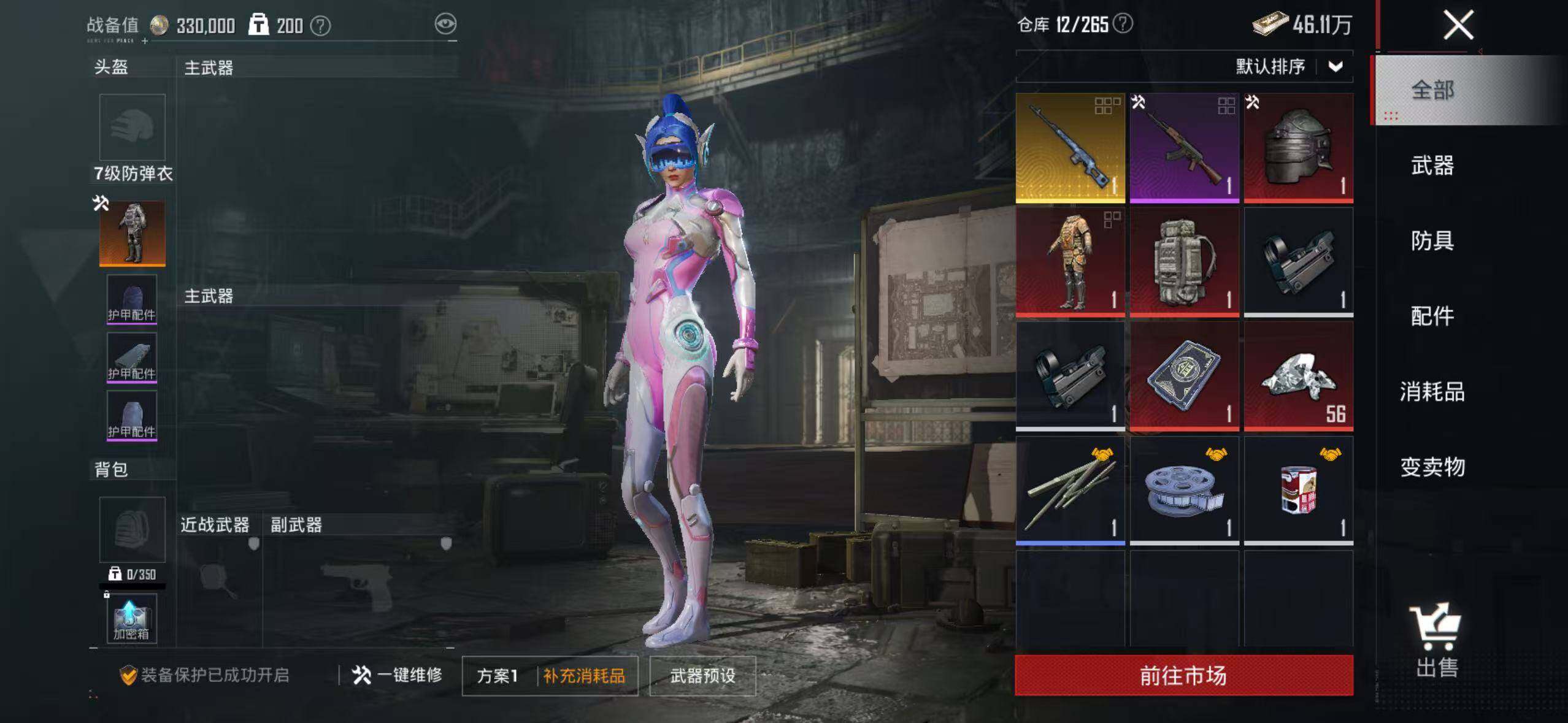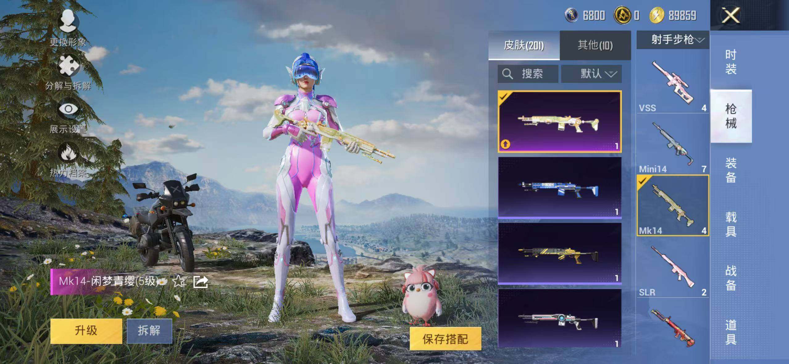 152套装/枪械3/装备262/战备171/王牌印记10/热力值63300/七级M416-风花雪月/五级Kar98K-巳巳如意/粉装-梦幻火箭/金羽特工/套装-粉红小猪/梦幻火箭/筑梦精灵/闲梦青缨/炫光之旅/M416-风花雪月/Kar98K-巳巳如意/MK14-闲梦青缨/百万伏特降落伞/PEL轰鸣竞梦者降落伞/神秘黑猫降落伞/潮汐统领降落伞/锦绣火鲤降落伞/香水柠檬降落伞/烈焰拳霸降落伞/齐天