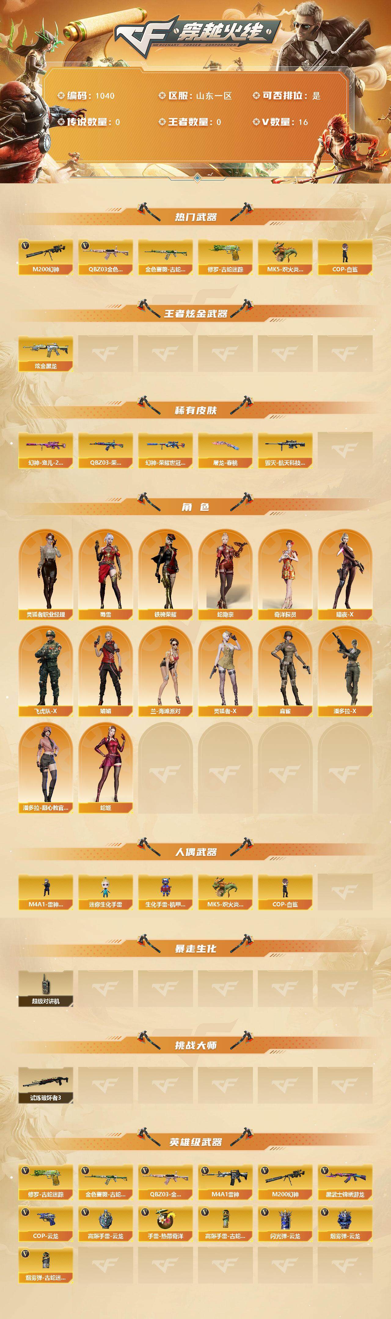 山东一区-16V-0王者-1炫金【热门武器】:QBZ03-金色蔷薇,M200