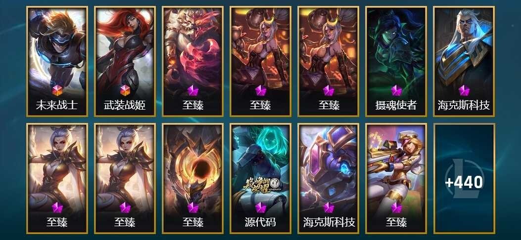 全英雄 IG冠军 龙瞎 EZ未来战士 武装战姬狗熊至臻 VN摄魂使者 乌鸦海克斯 ad多皮肤