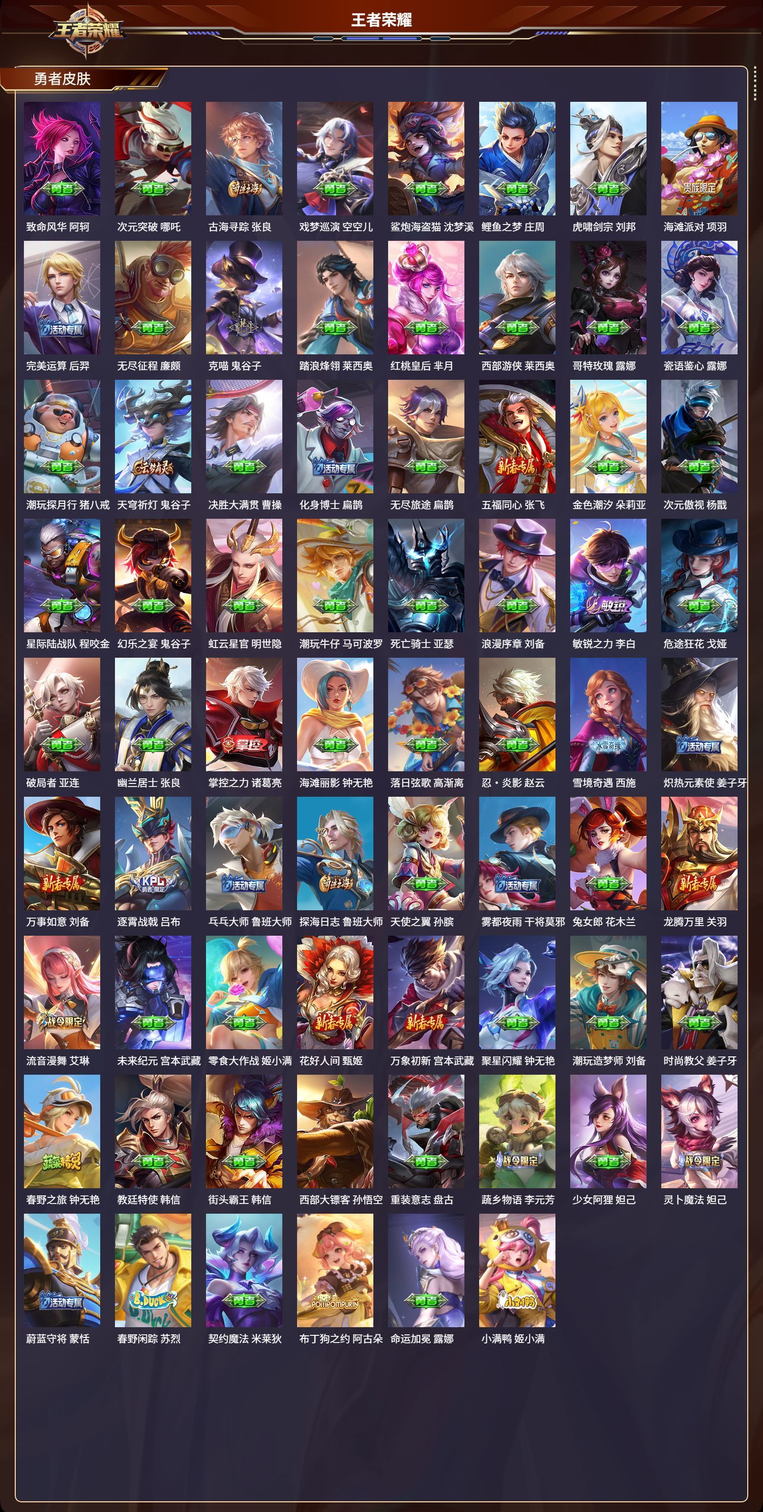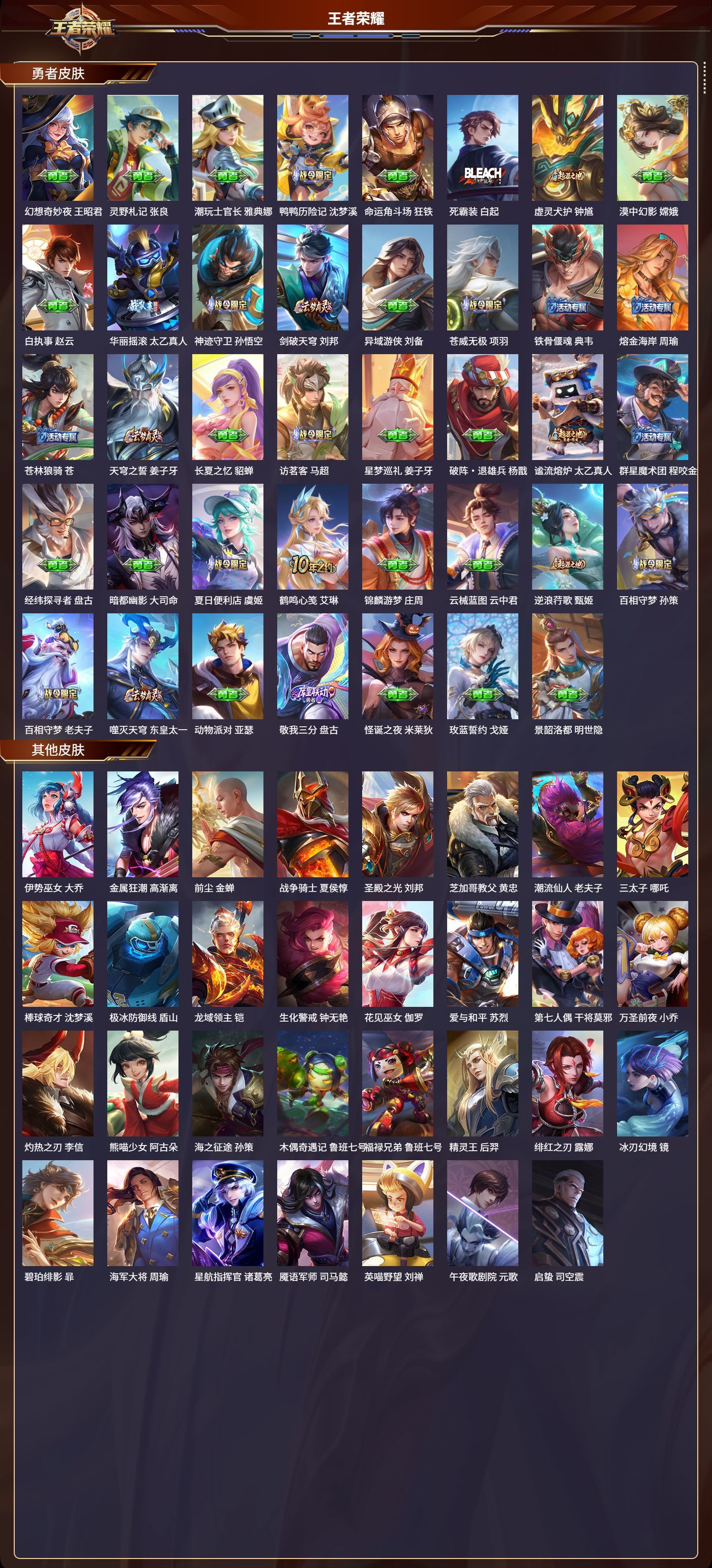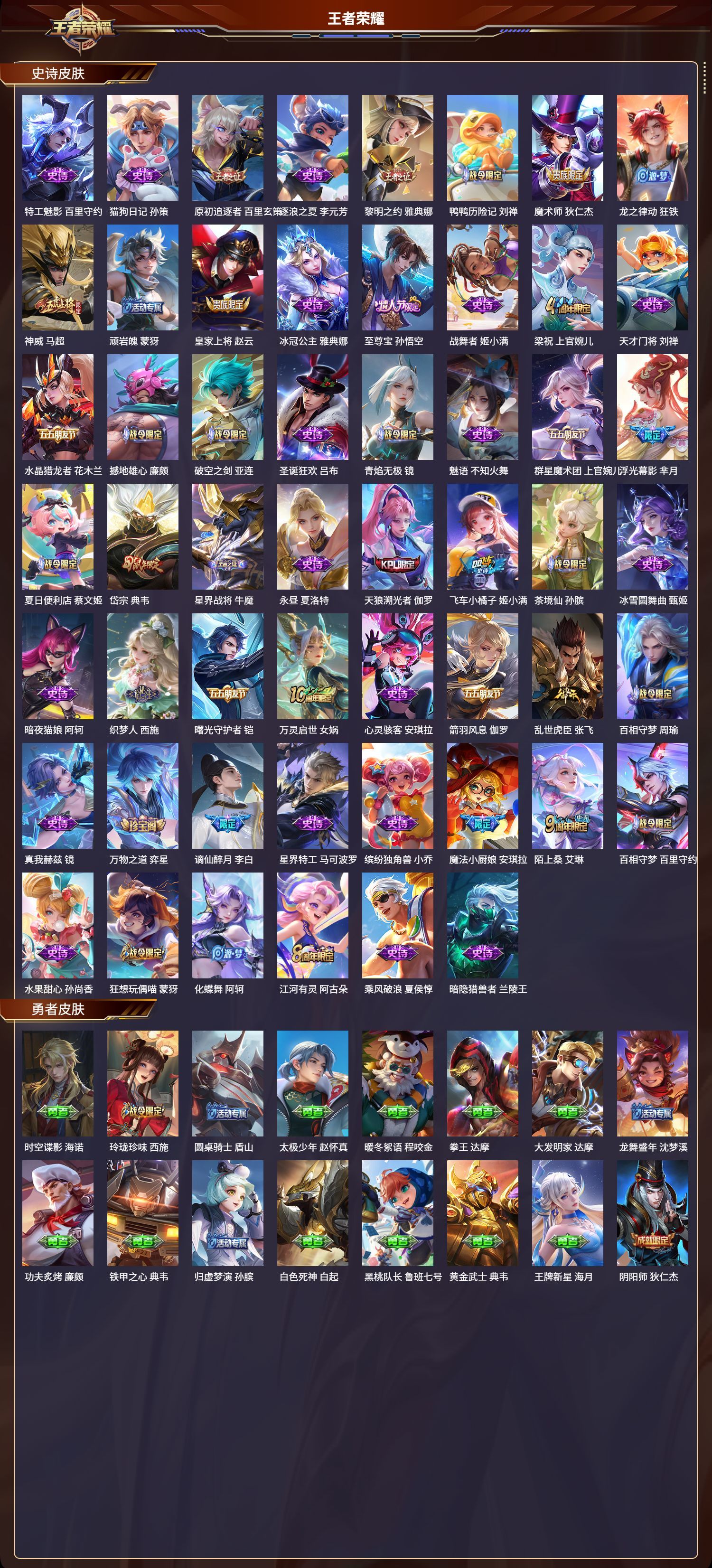 安卓QQ/绝世王者/325皮肤/127英雄/3典藏/1珍品无双/1无双/4珍品传说/27传说/88史