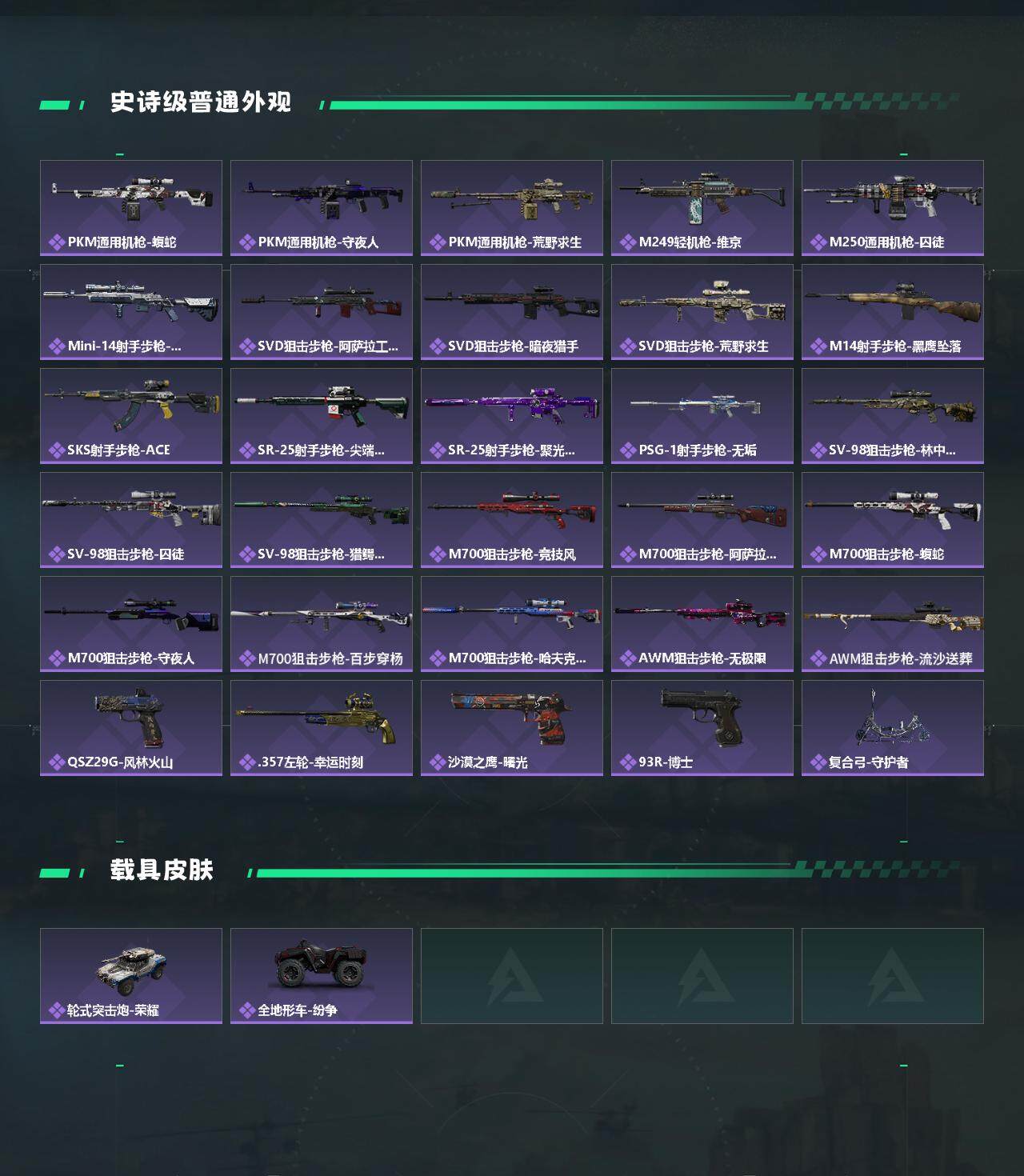 【近战皮肤】:近战-黑海,近战-北极星,近战-信条,近战-黑鹰