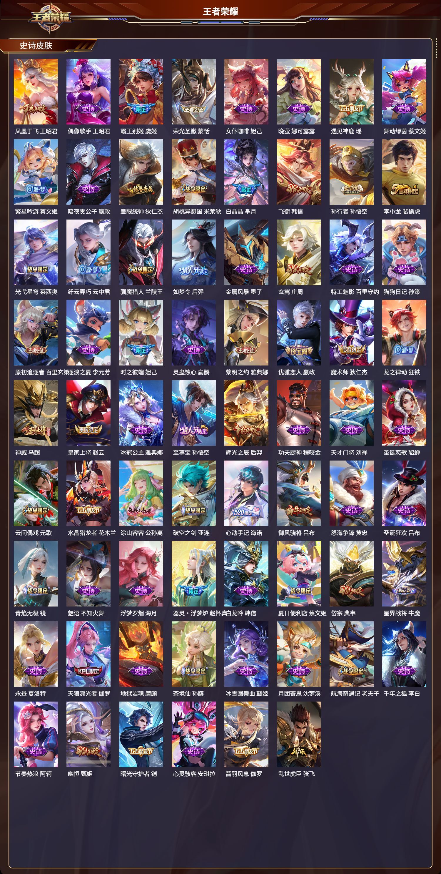 苹果QQ/荣耀王者/393皮肤/127英雄/2典藏/0珍品无双/2无双/1珍品传说/36传说/113