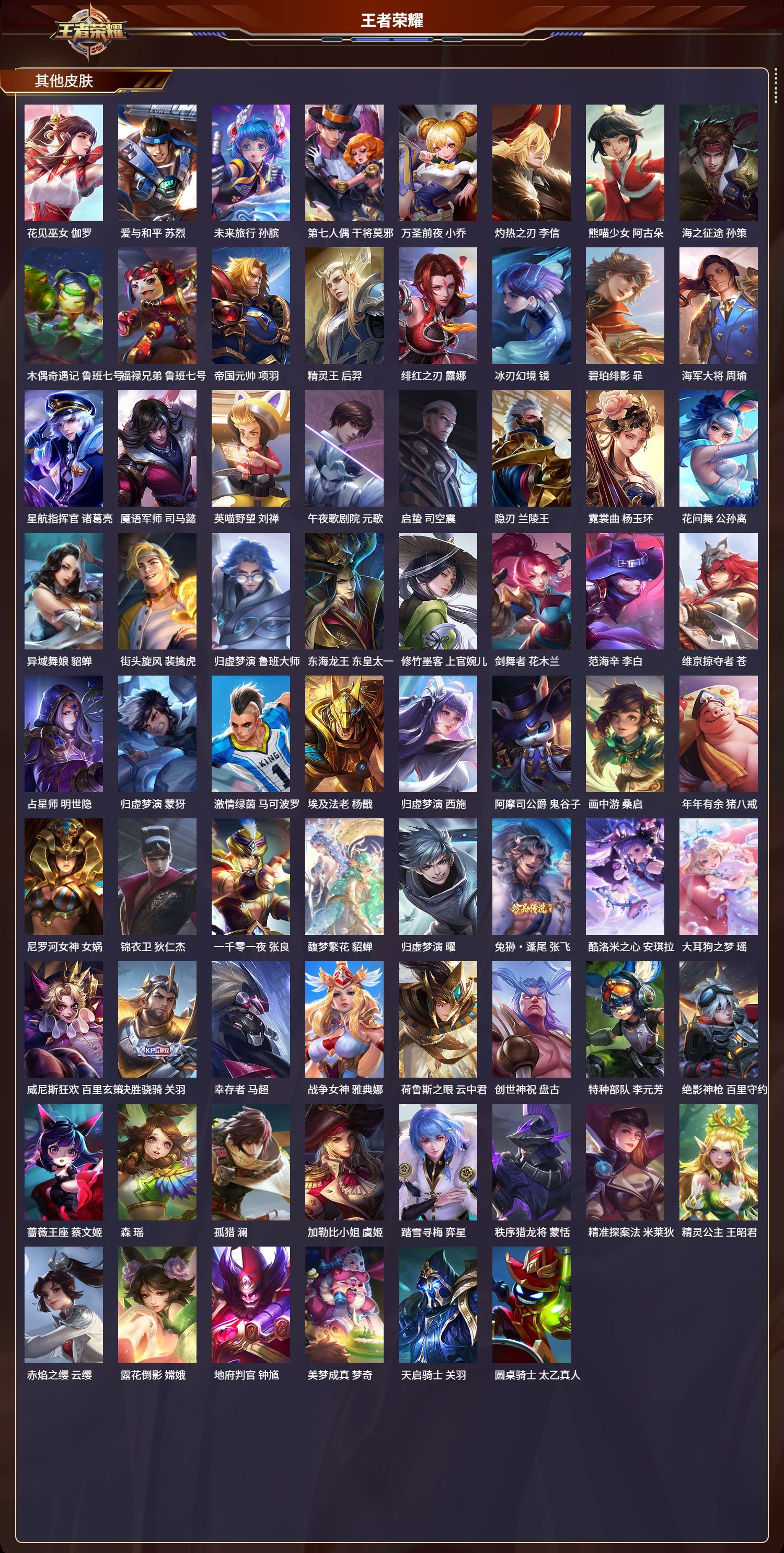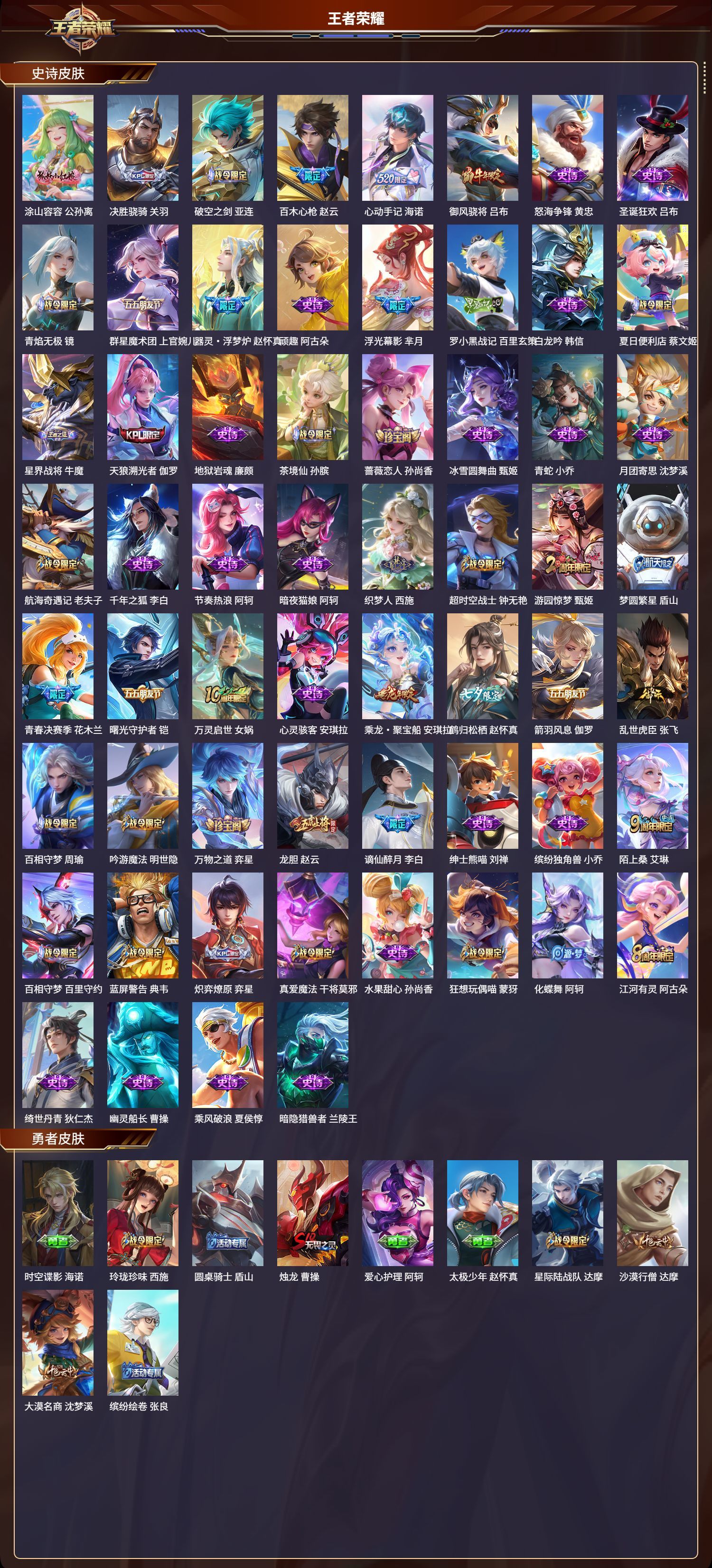 安卓QQ/传奇王者/557皮肤/128英雄/4典藏/1珍品无双/8无双/9珍品传说/82传说/166