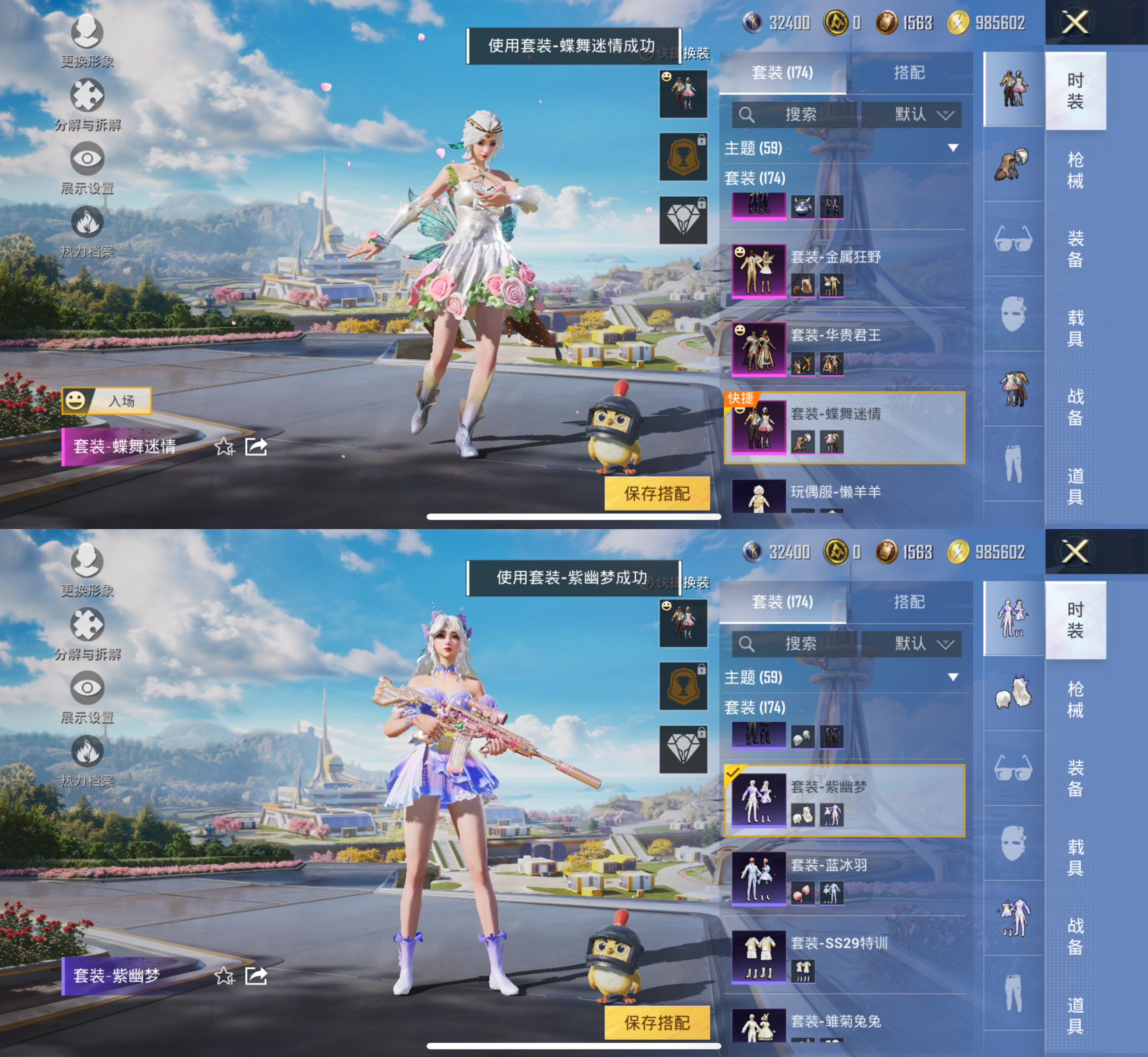 1载具7粉装8特效枪36热门174套装