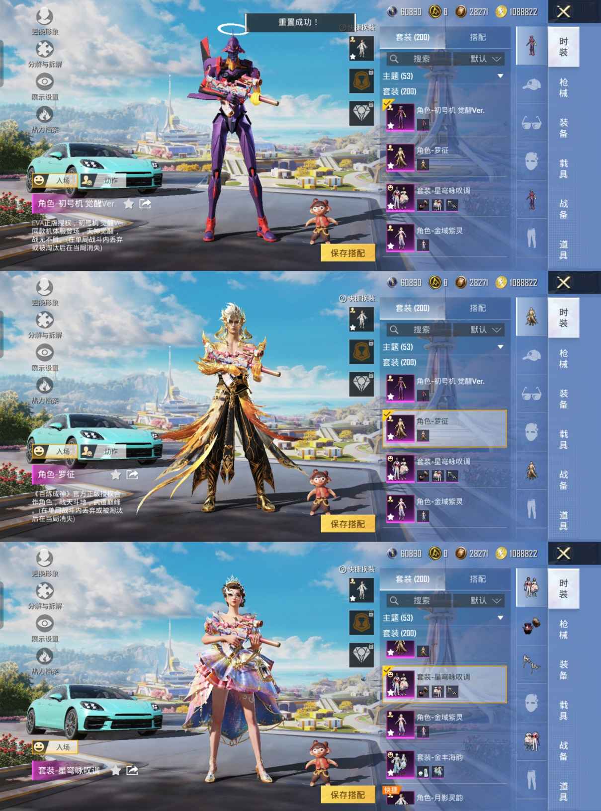 1载具10粉装5特效枪 觉醒螳螂 浪漫天命 暗影哥特 申公豹 保时捷