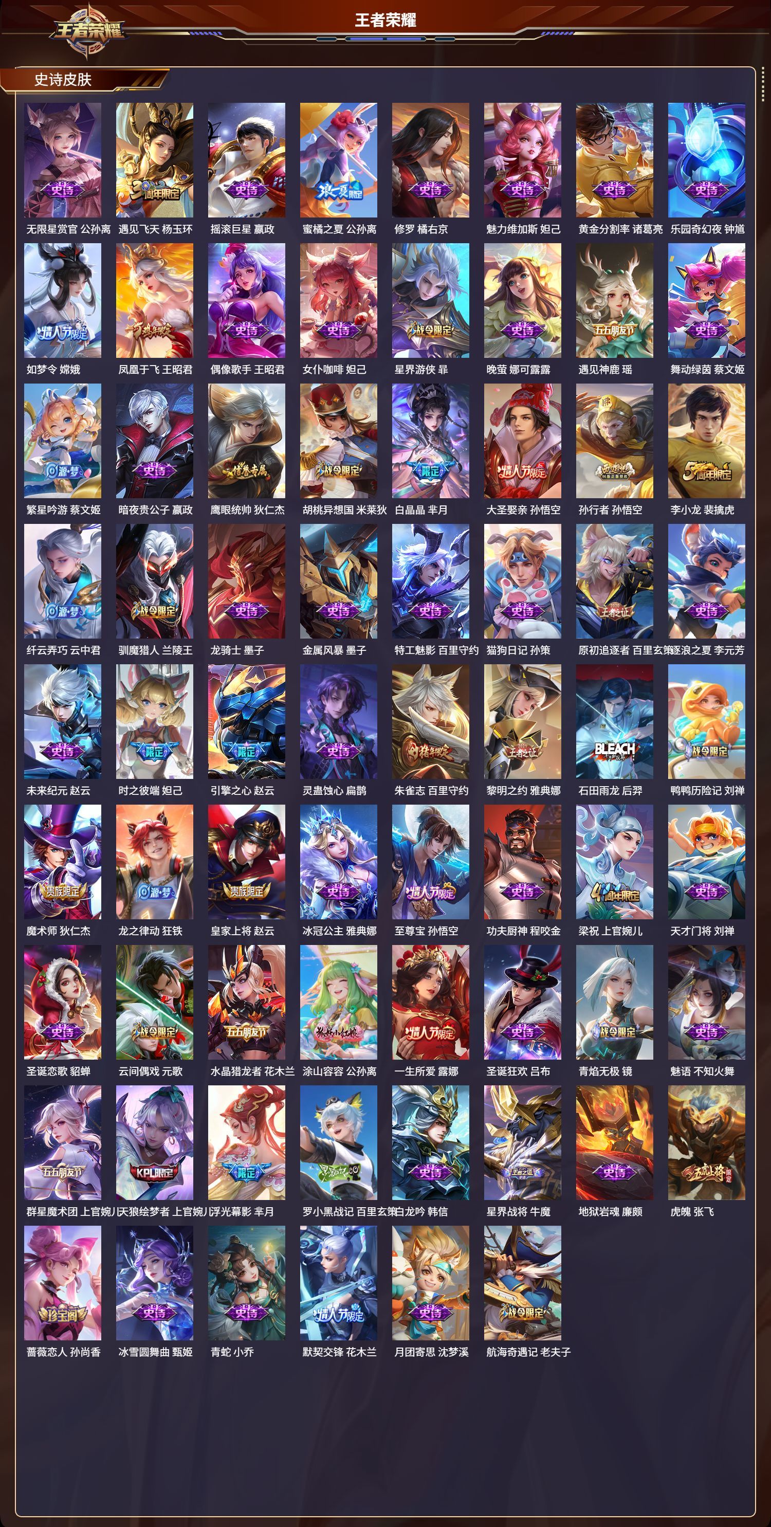 安卓QQ/荣耀王者/397皮肤/128英雄/9典藏/0珍品无双/2无双/0珍品传说/34传说/117