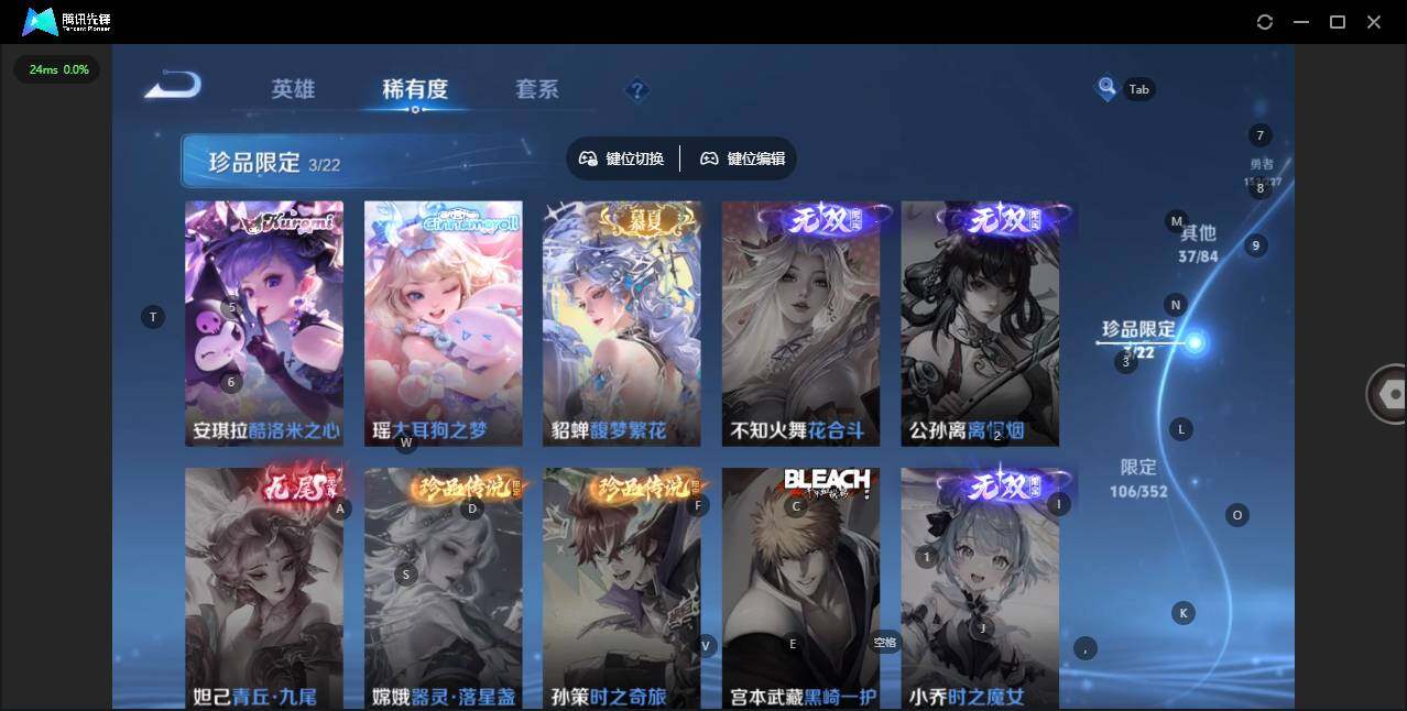 【王者荣耀连体和平精英】实名: 可修改 贵族等级: V7 英雄数: 125 皮肤数: 285 荣耀水晶: 拾光映像 珍品传说: 酷洛米之心,大耳狗之梦 星传说: 金色仲夏夜 传说皮: 黄金白羊座,猫影幻舞,炽阳神光,云霓雀翎,仲夏夜之梦,零号·赤焰,乞巧织情,游龙清影,遇见胡旋,追逃游戏(安琪拉),鹤羽星尊,貂蝉曦玄引,朵莉亚心动手记,神树通天 限定皮: 遇见飞天,