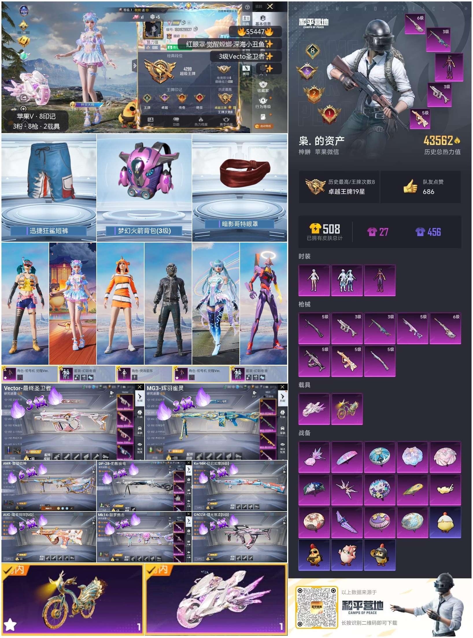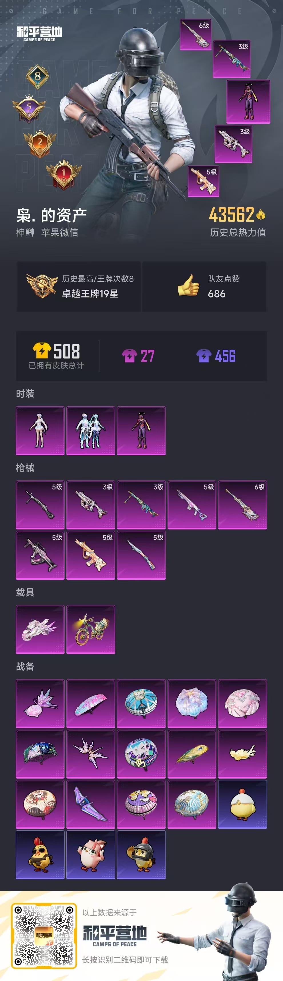 hs55447 苹果微-8王牌印记-3粉装-8特效枪-2载具-43562热力值-86套装-135枪