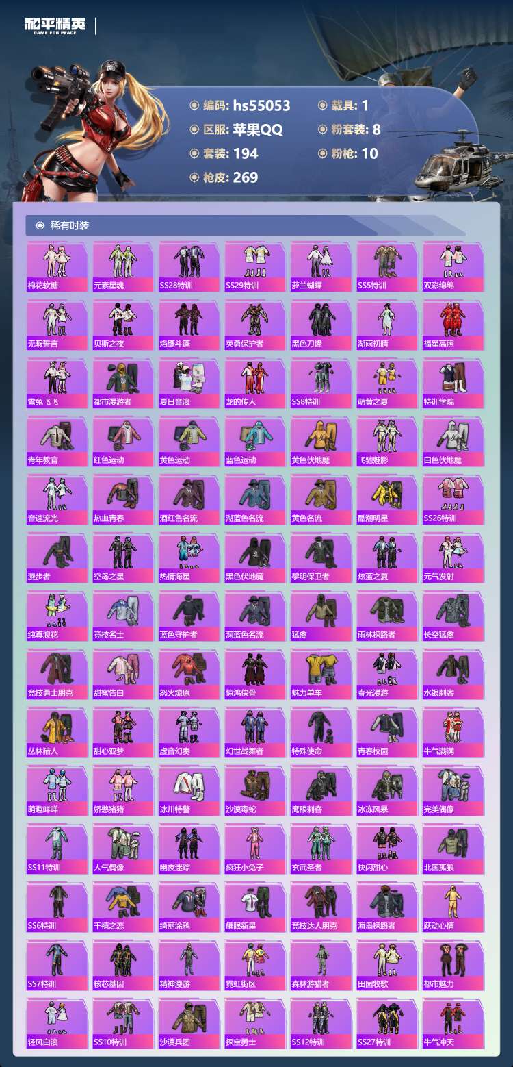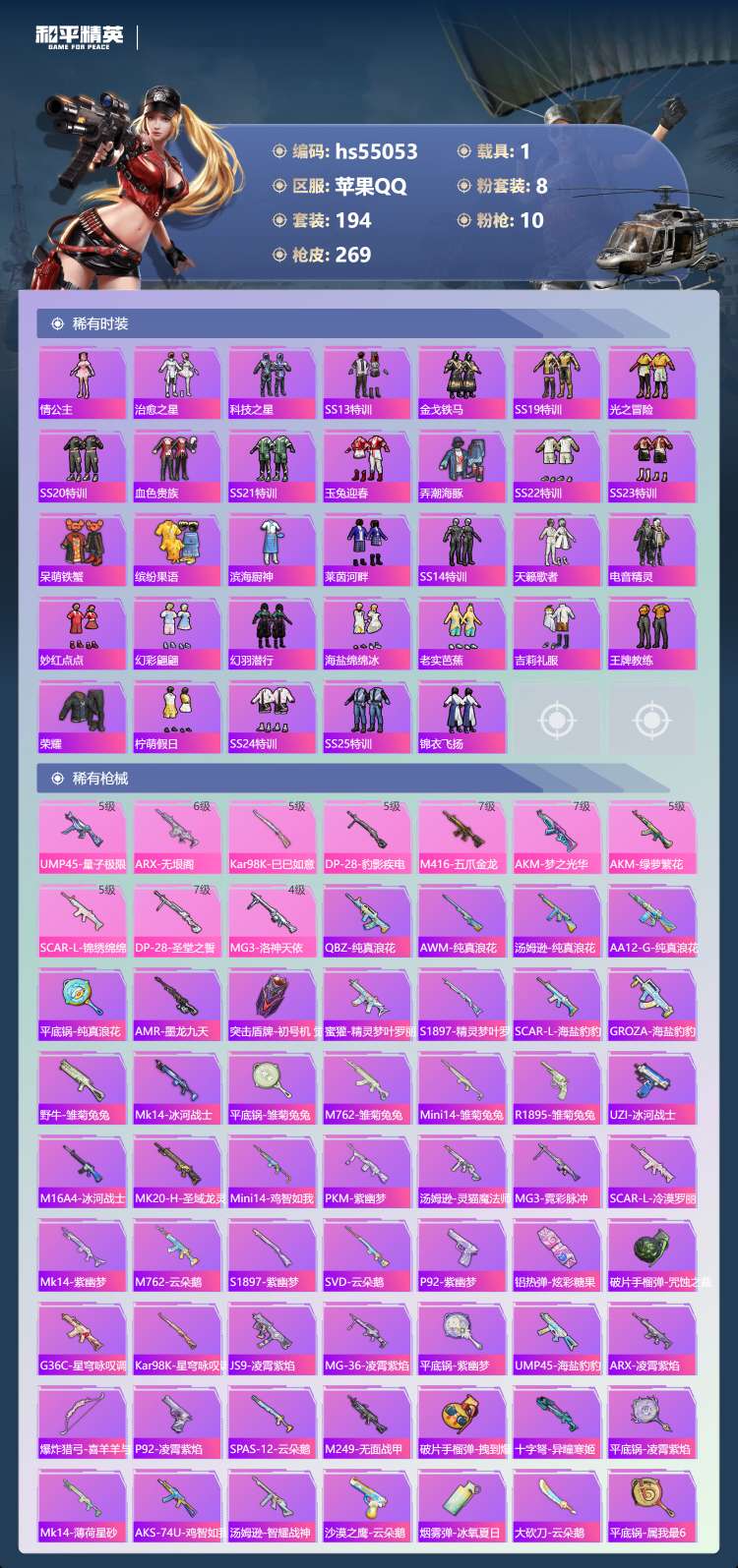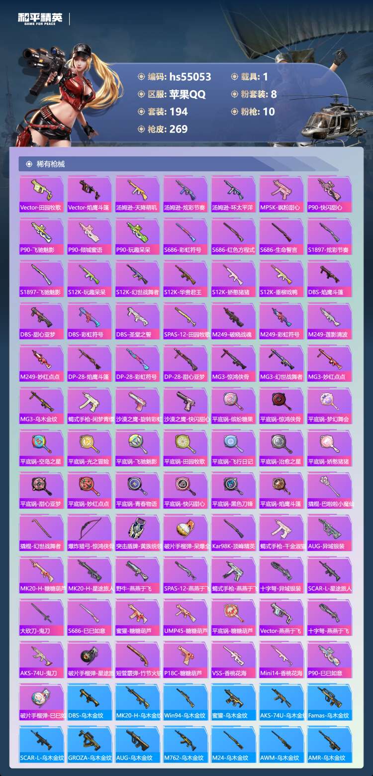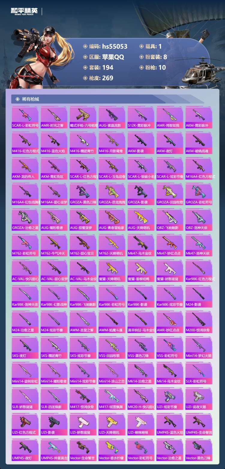 hs55053 苹果手Q-11王牌印记-8粉装-10特效枪-1载具-91767热力值-194套装-2