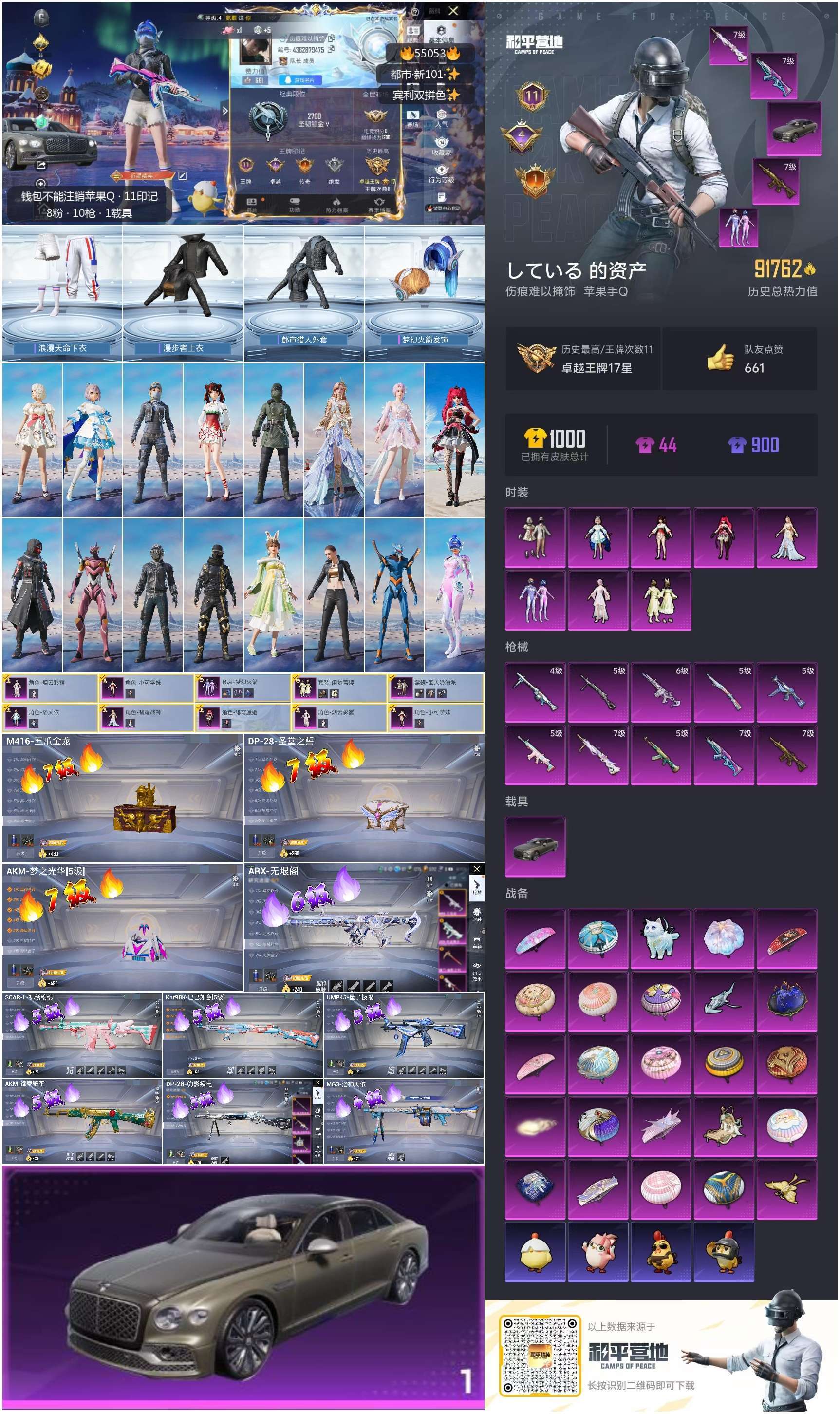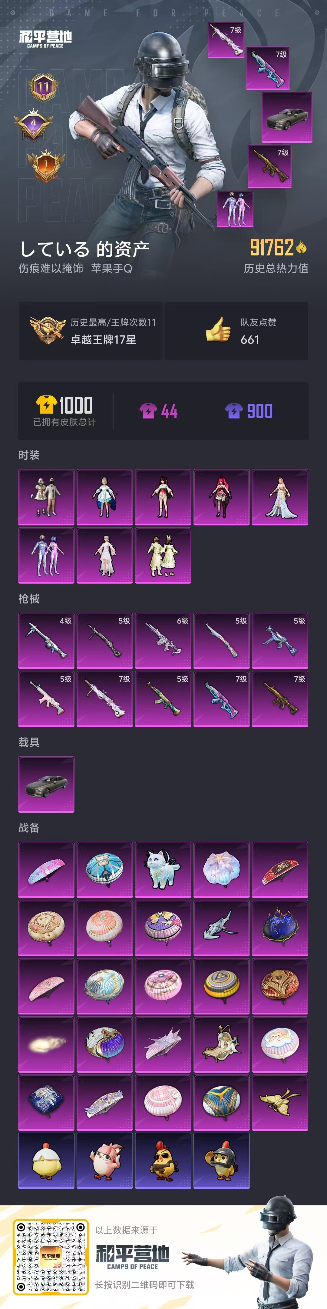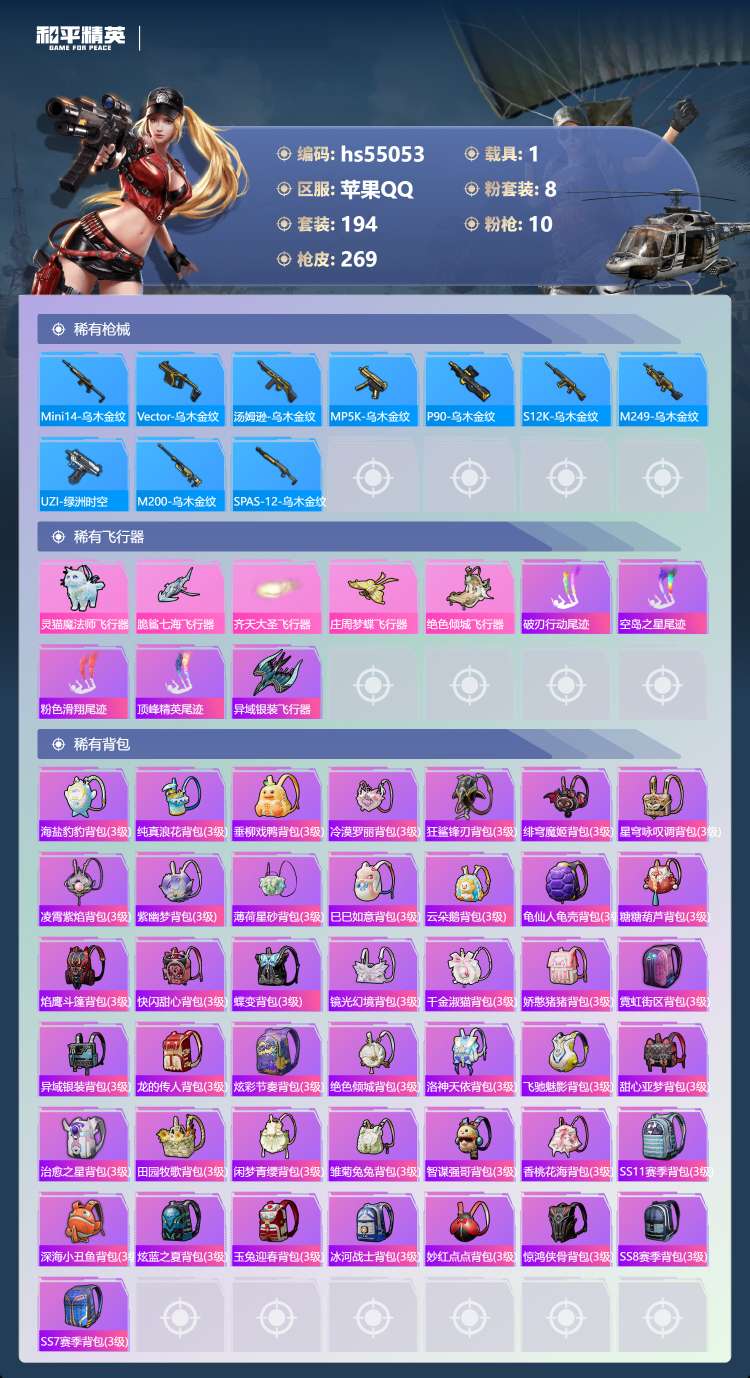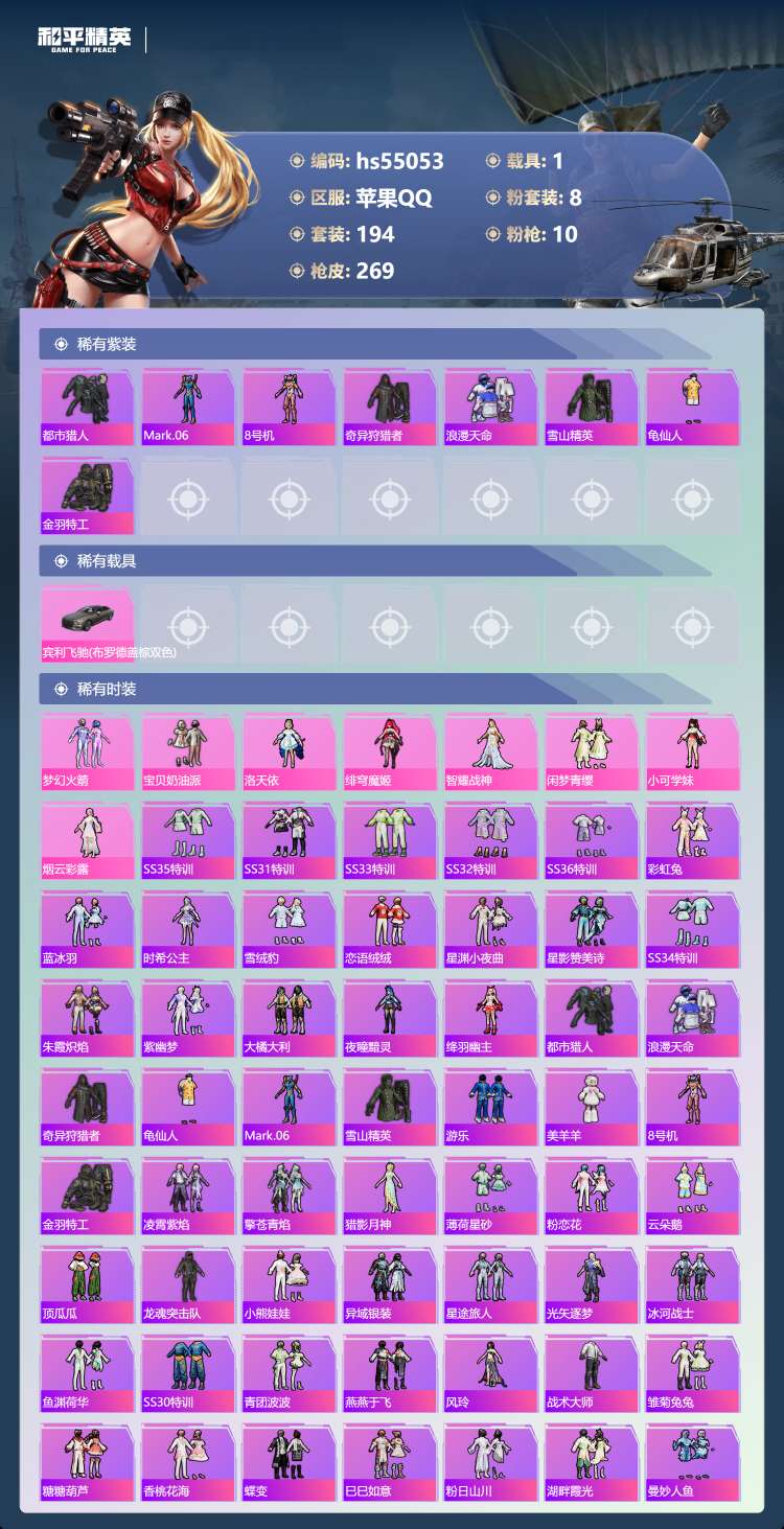 hs55053 苹果手Q-11王牌印记-8粉装-10特效枪-1载具-91767热力值-194套装-2