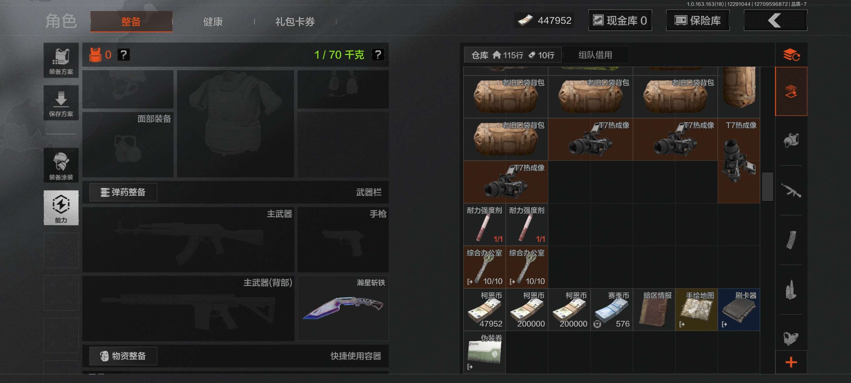有500多万 4个热成像 两把金枪皮,一把刀皮 眼镜和头套都是金的
