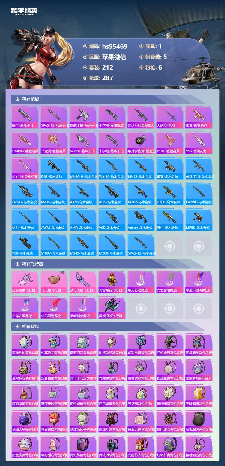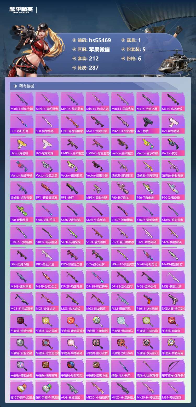 hs55469 苹果微-23王牌印记-5粉装-6特效枪-1载具-88375热力值-212套装-28