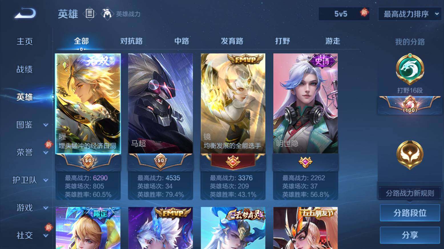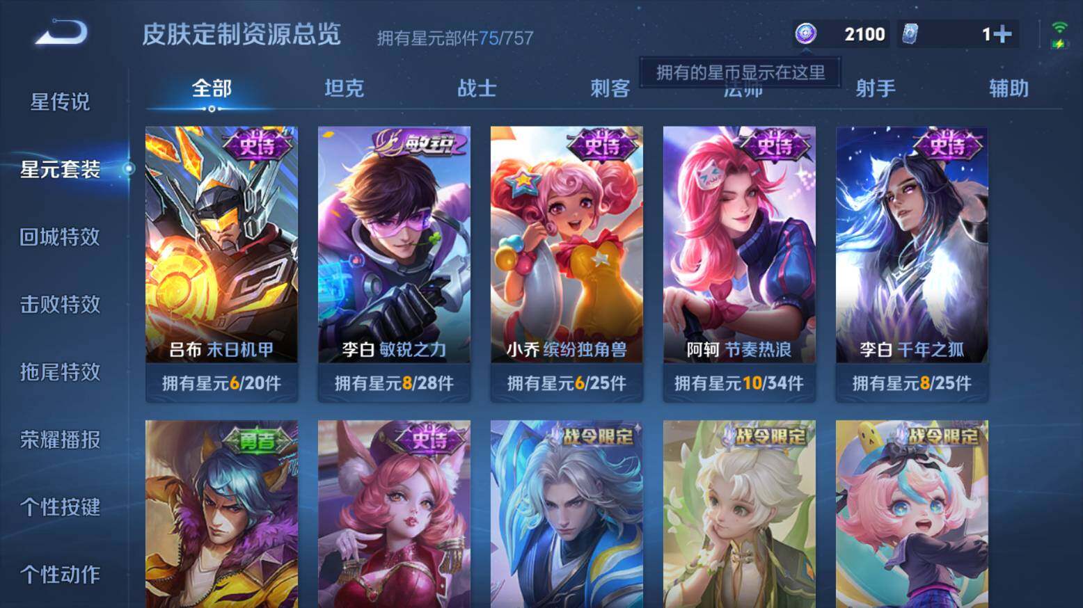打野神号,1星传说,8按键,星币2100,安卓Q-V7-125英雄-140皮肤-1典藏皮肤-1无双-10传说-43史诗