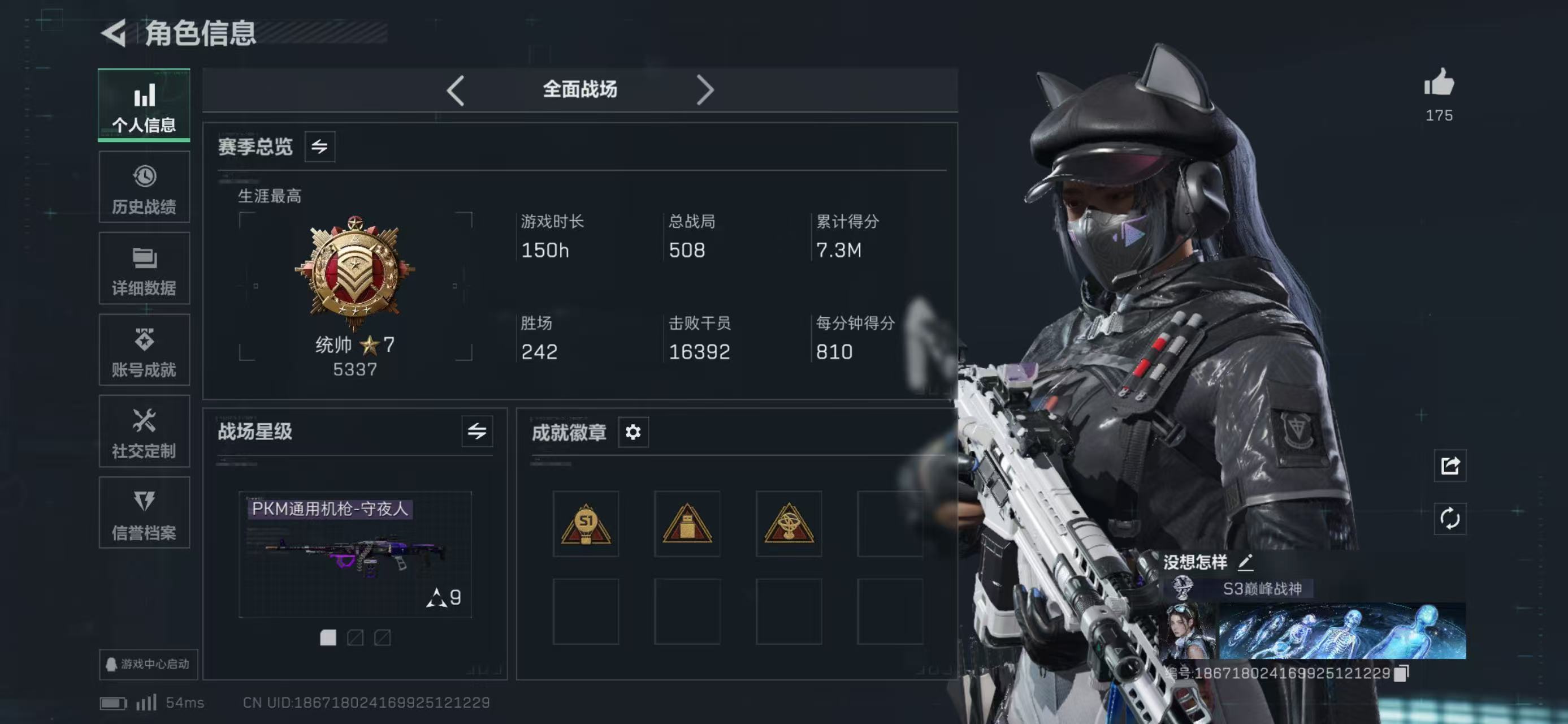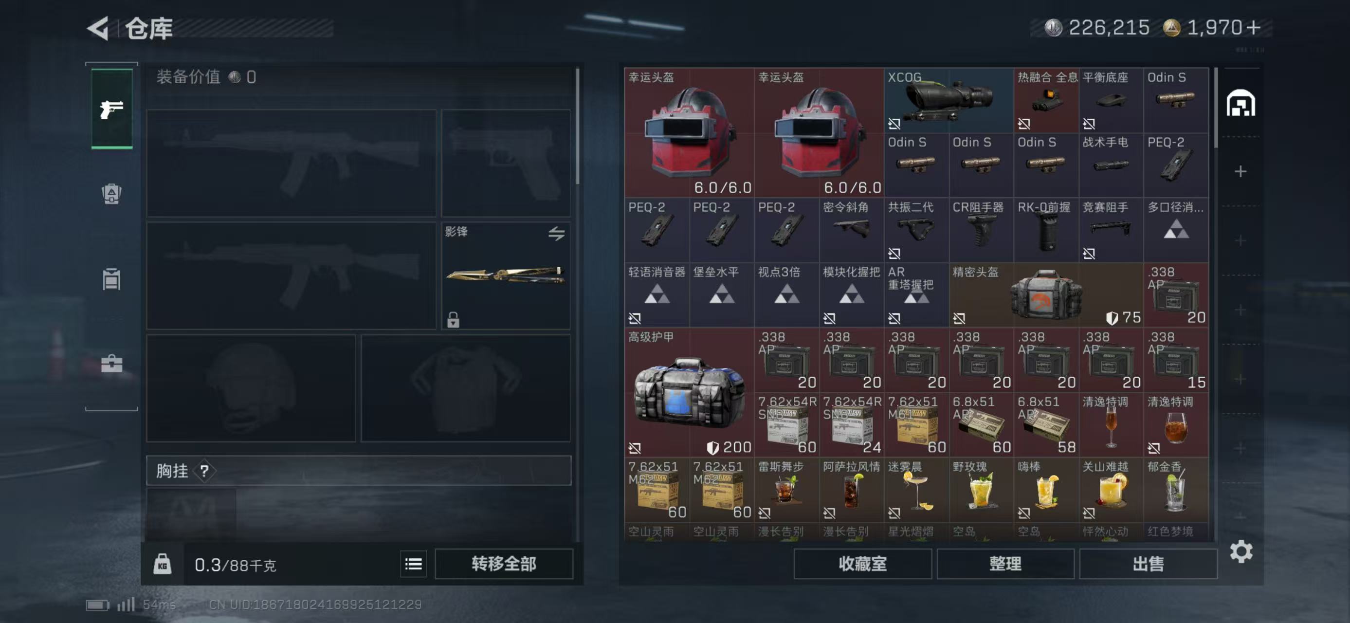 总资产227.07M,哈夫币 226.22K,战场等级:50 尉官,行动等级:60 钻石,角色皮肤9