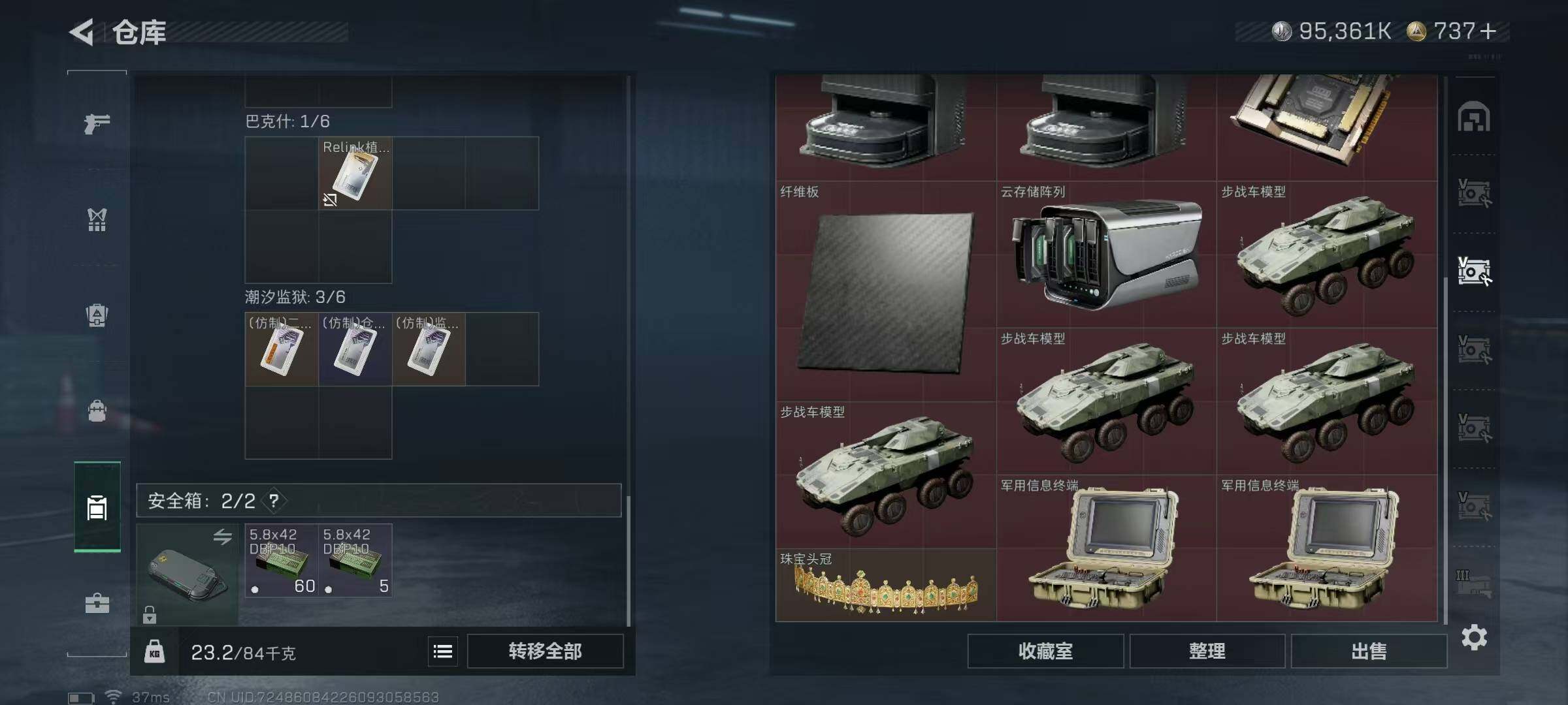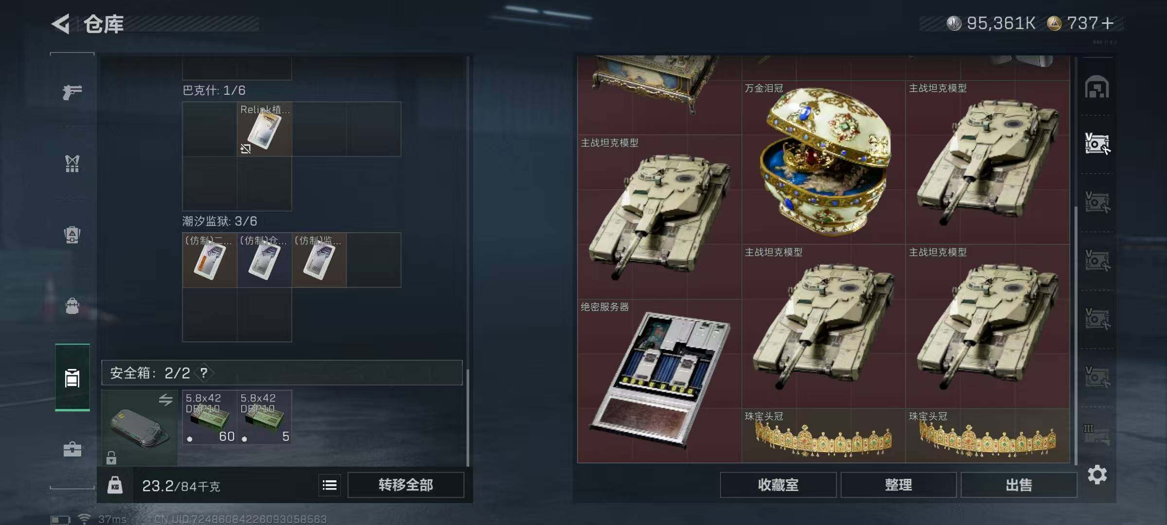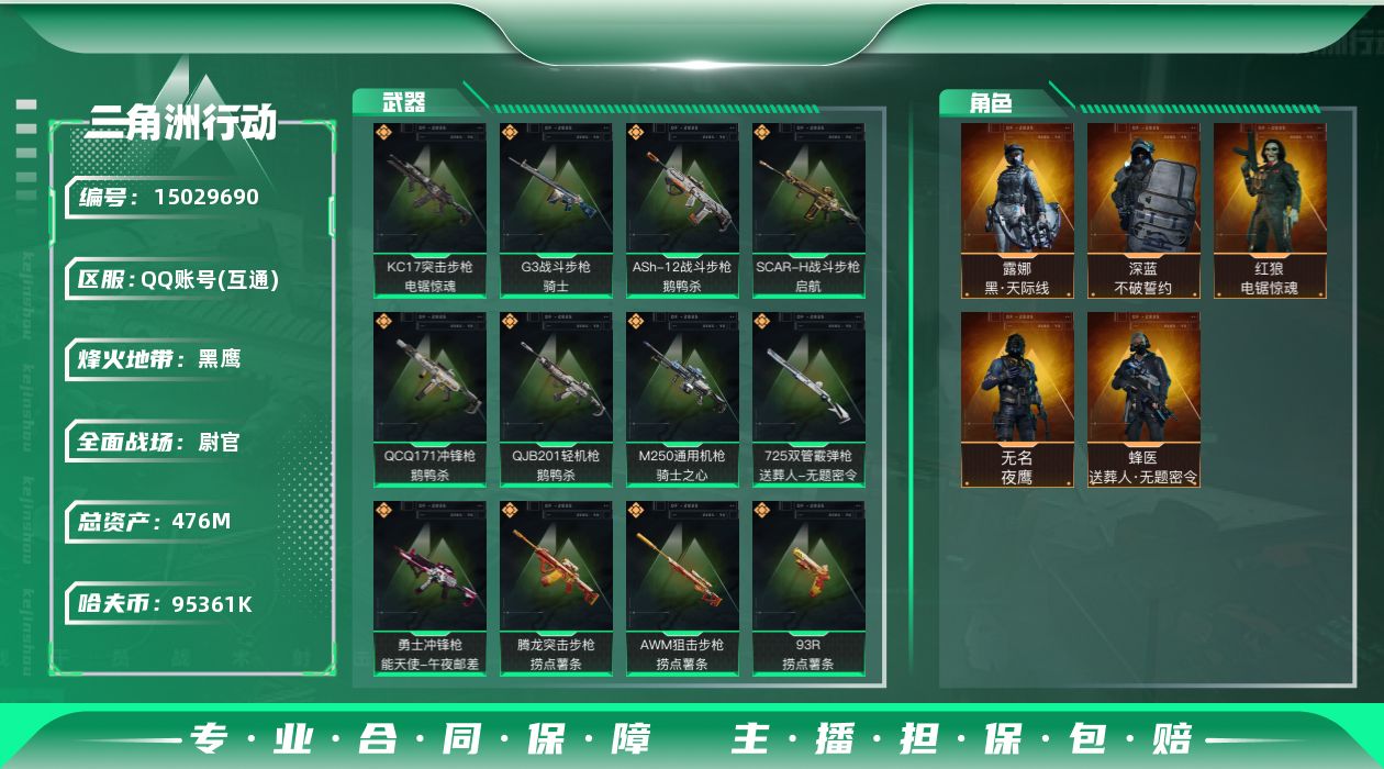 总资产(M):476M/哈夫币(K):95361K/哈夫币(K):95361K/全面战场等级:30_