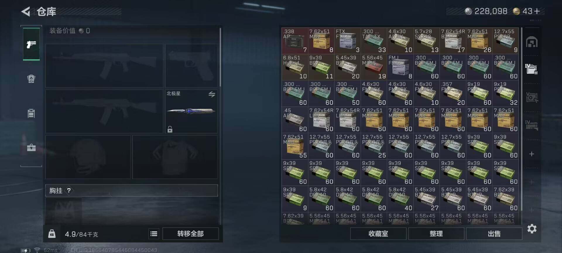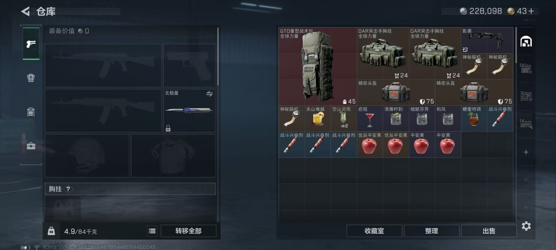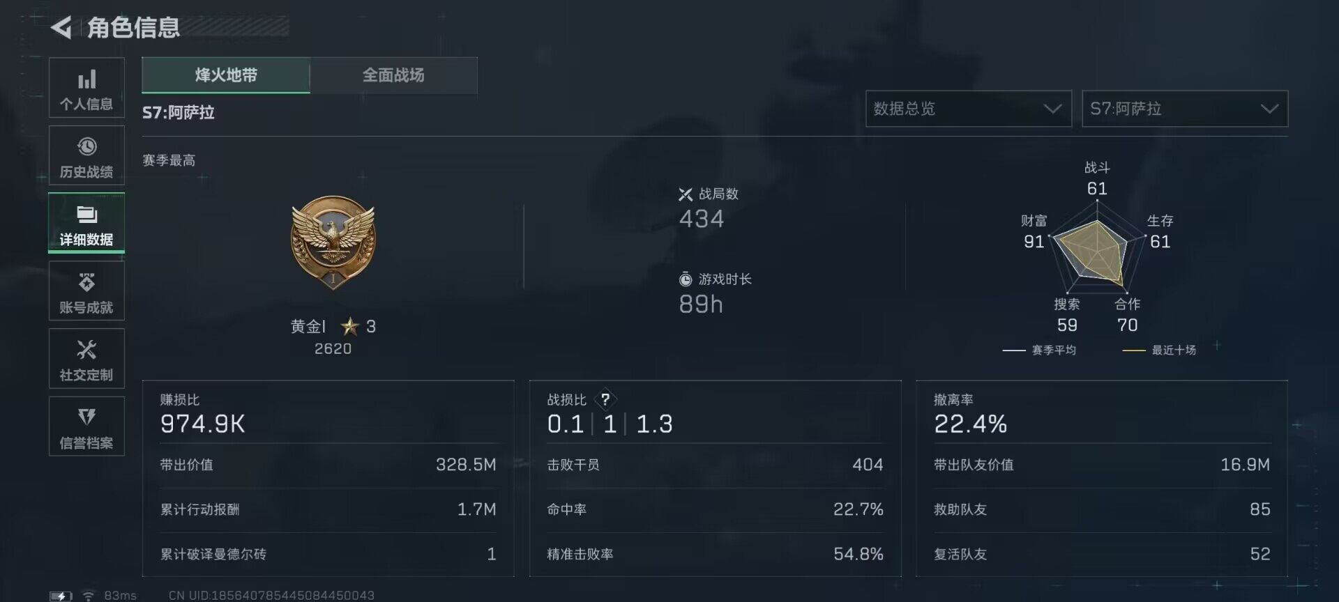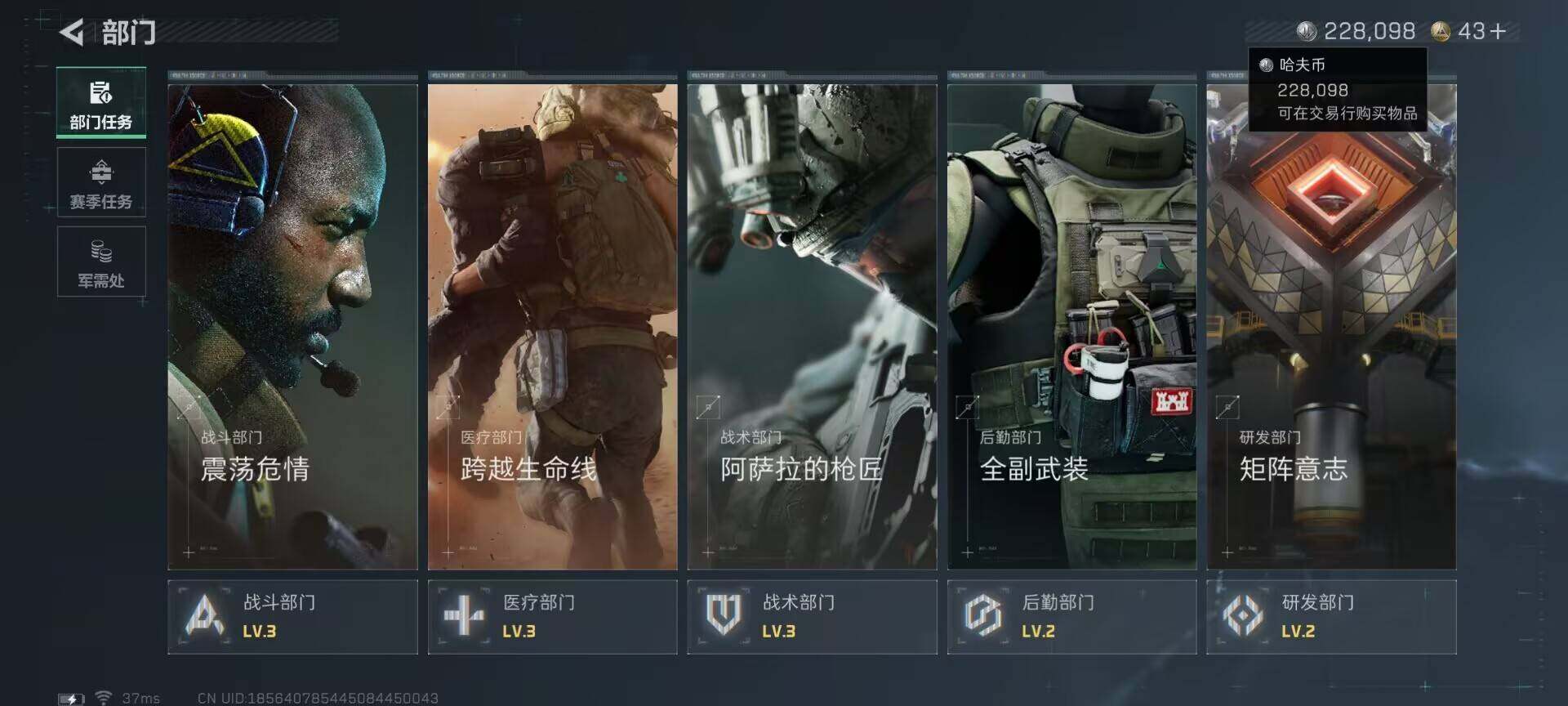 总资产(M):95M/哈夫币(K):228K/哈夫币(K):228K/全面战场等级:40_段位:上等