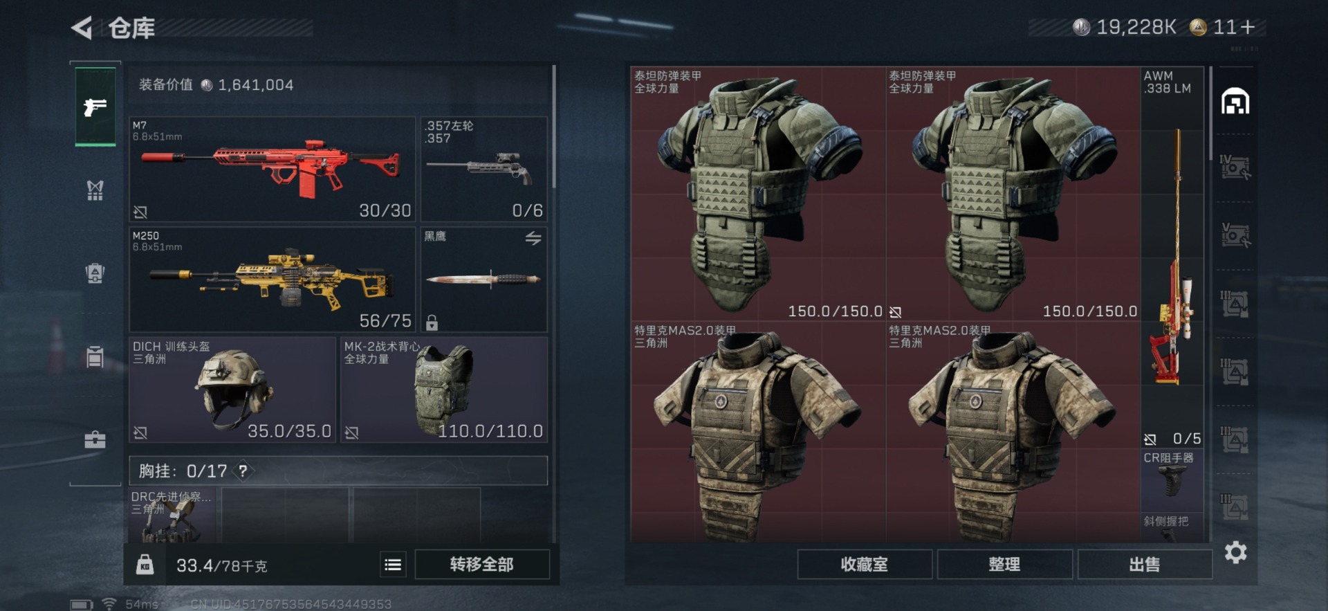 总资产:341.8M 1干员外观 12传说枪械 哈夫币:19.228K 可二次 可修改实名