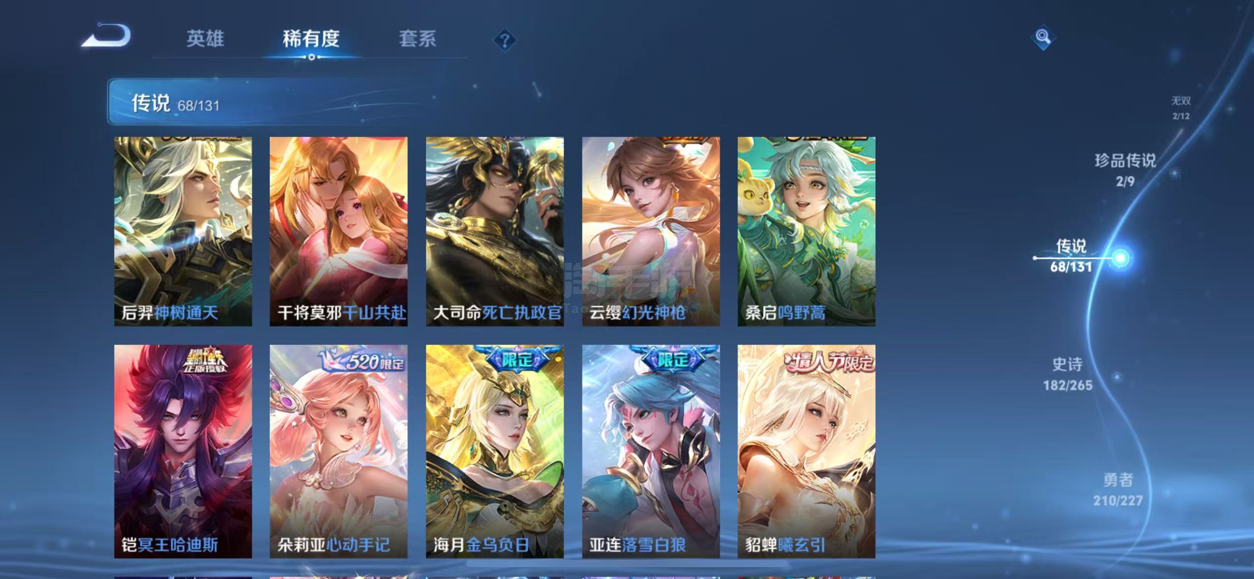 苹果QQ-可二次-贵族10-皮肤554 英雄127 荣耀典藏7-无双皮肤2-珍品传说3-传说68-5星传说-其他皮肤222