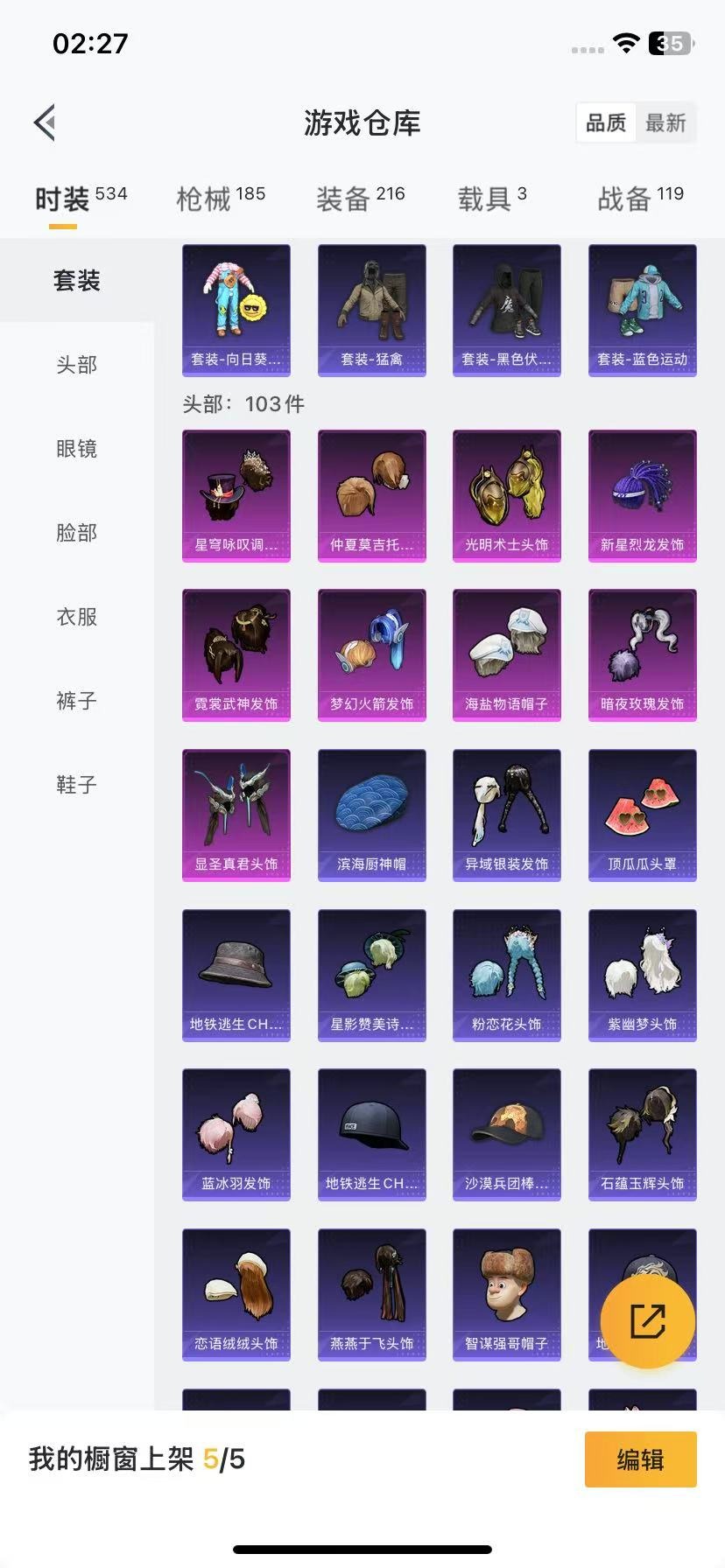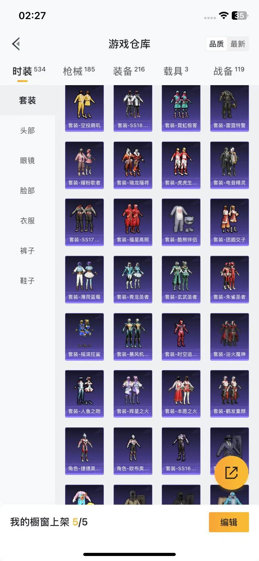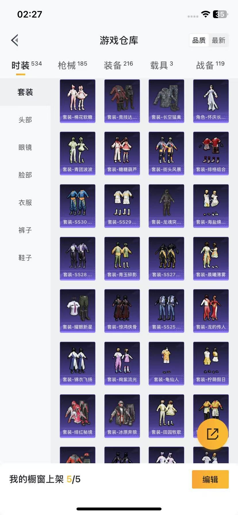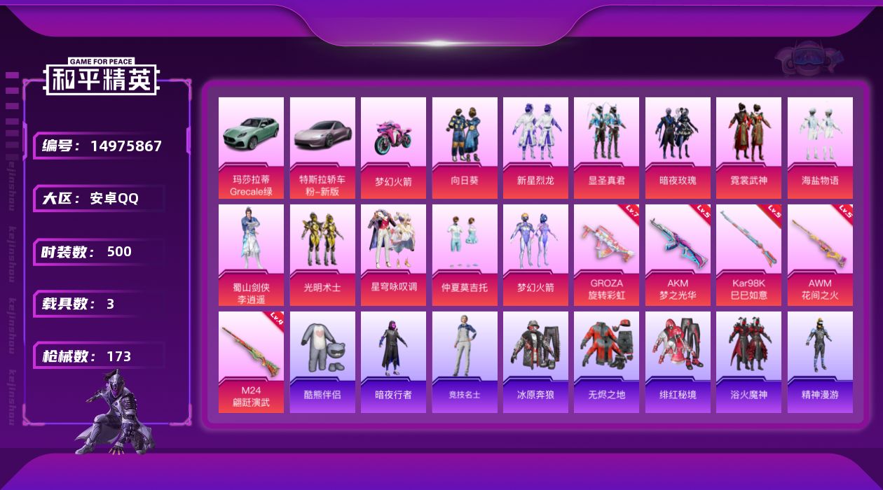 10粉装 5特效枪 3载具 7印记 可二次 可修改实名 时装数:500 枪械数:173 战备数:3