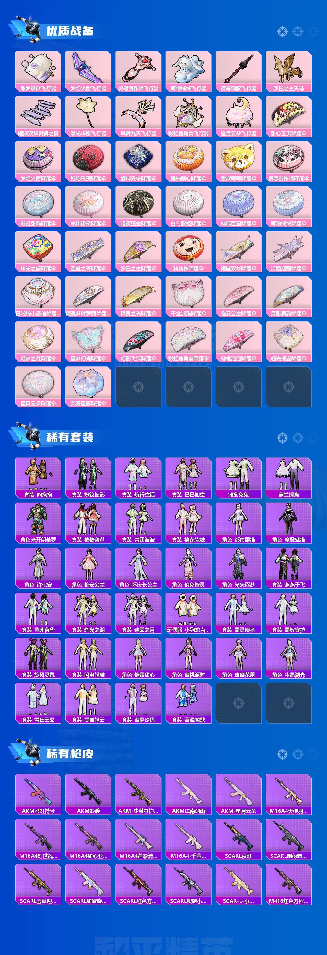 【A2026】苹果【极品神装号/13王牌印记/沙丘之主-图卡盟(三级)/精灵之光-露米娜(一级)/镜域双华-欧若拉(一级)/M416-超新星(九级)/怪诞乔克/甜心巧克力/雪国幻梦/梦幻火箭/缤纷油彩/放客神游/洛天依/白勺歌姬/小叽联名款/都市猎人/派对舞王/胖达圆圆/沙漠守护者/暗影哥特/3神装-44粉装-16特效枪-3载具-11粉色飞行器】 微信--110654热力值-13王牌印记-218套装-260枪皮