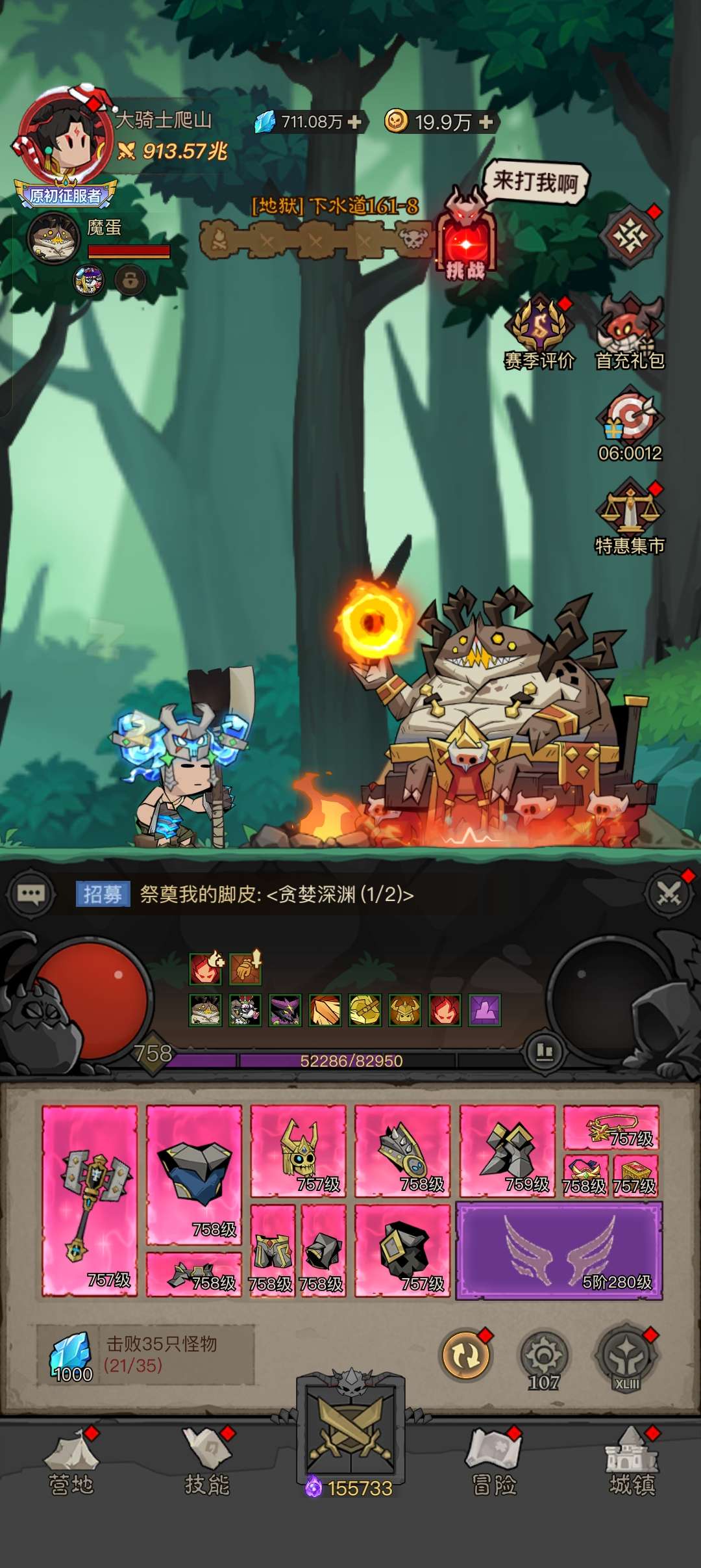 英雄没有闪 758级1100兆号,有赛季卡,战力绝不虚,大量资源