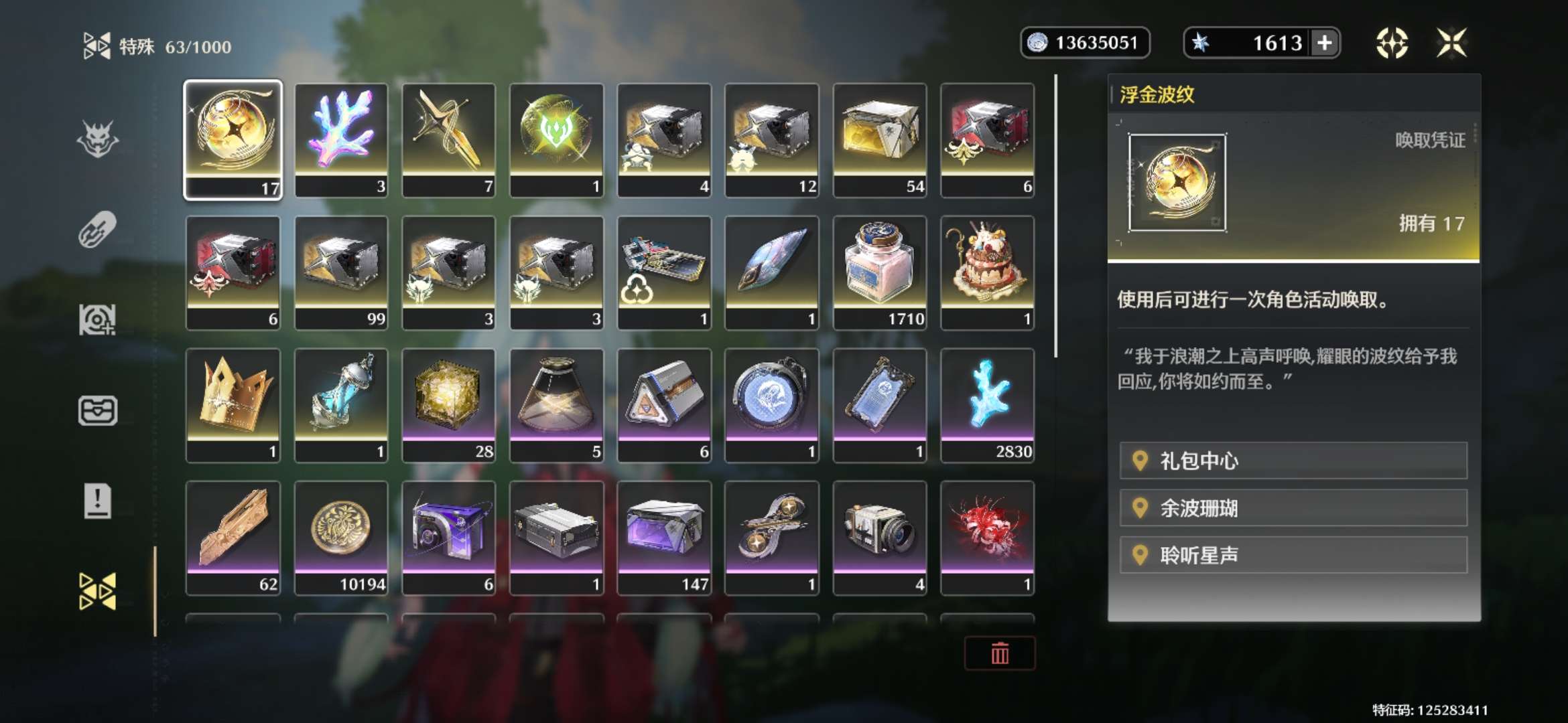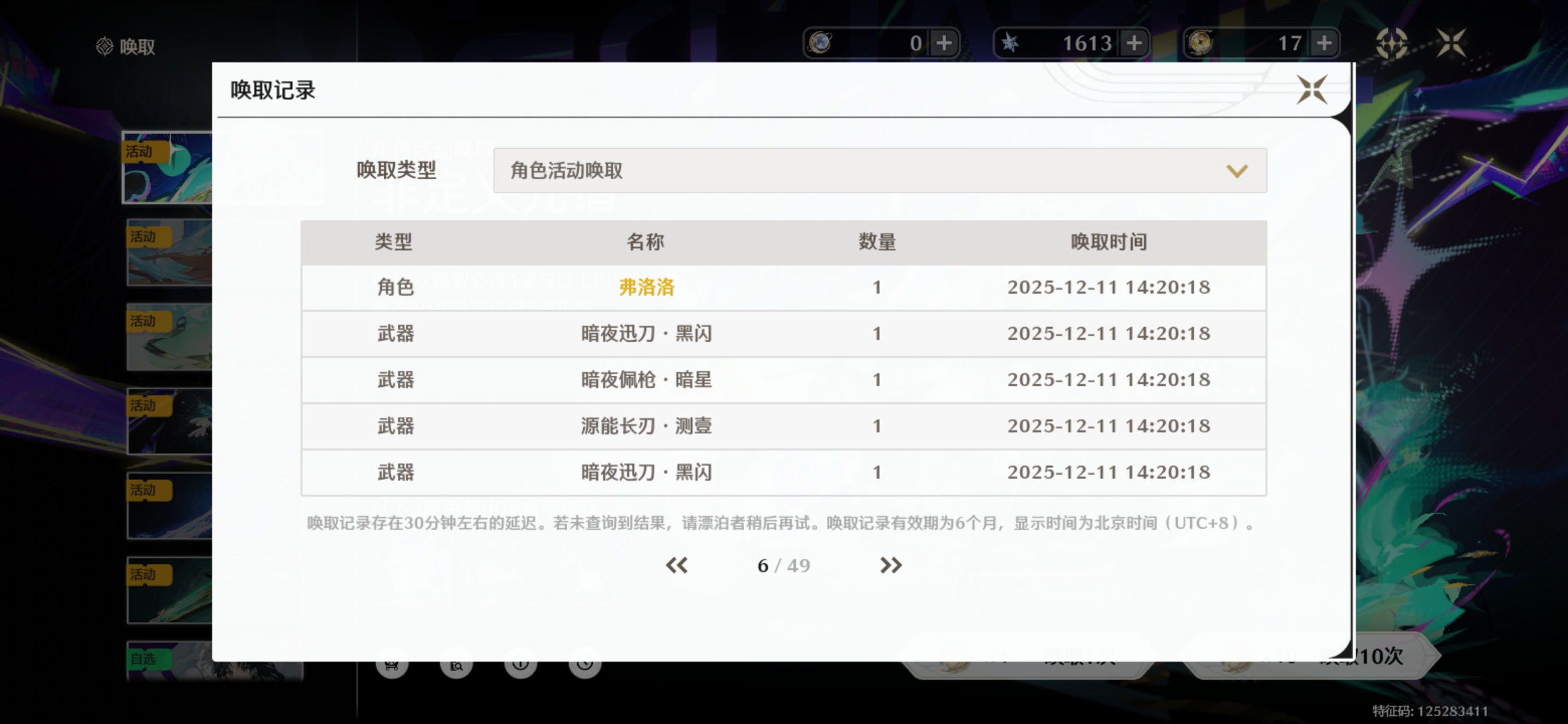 鸣潮31嘉贝莉娜31椿01弗洛洛 单赞妮 角色垫25抽 有双倍 有探索 C287