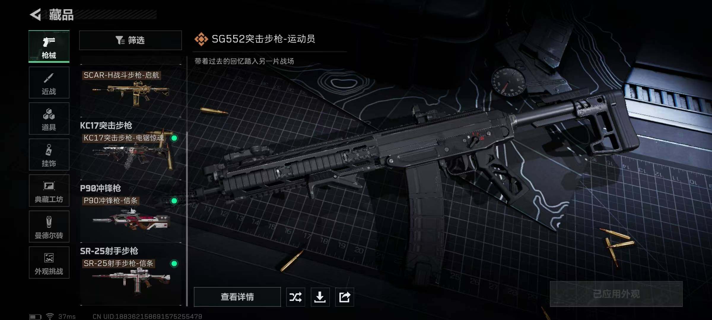 【传说外观】:SG552突击步枪-运动员,SCAR-H战斗步枪-水墨云图,SCAR-H战斗步枪-启航,KC17突击步枪-电锯惊魂,P90冲锋枪-信条,SR-25射手步枪-信条