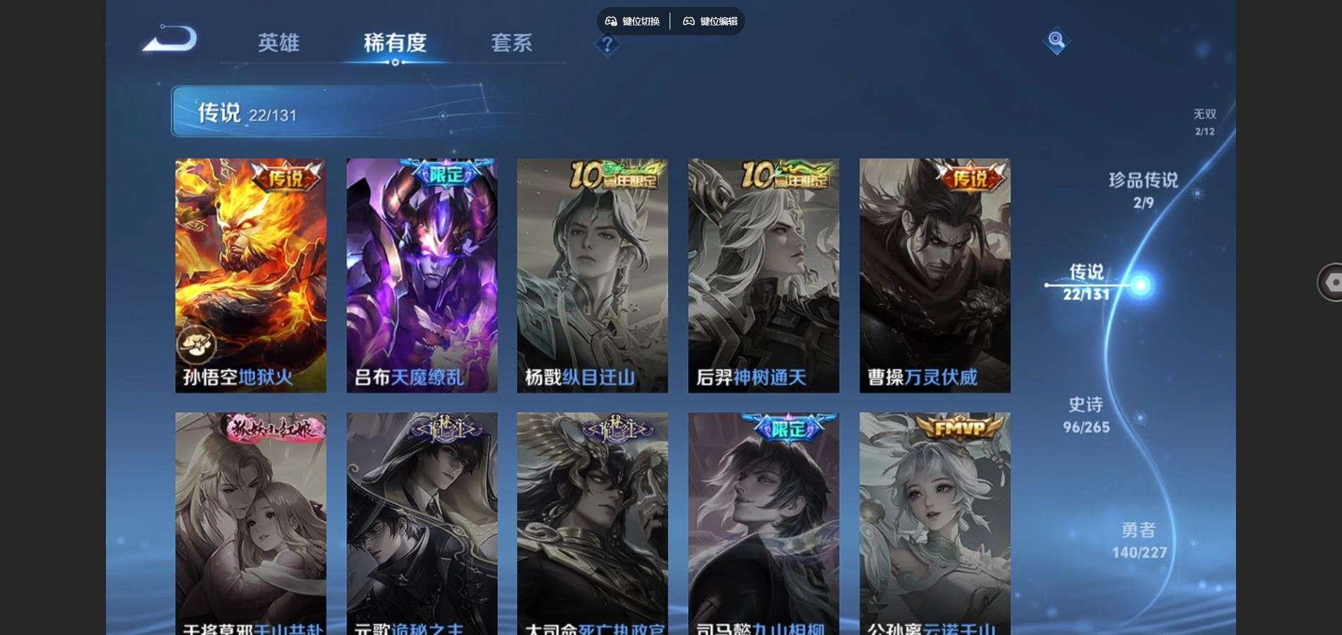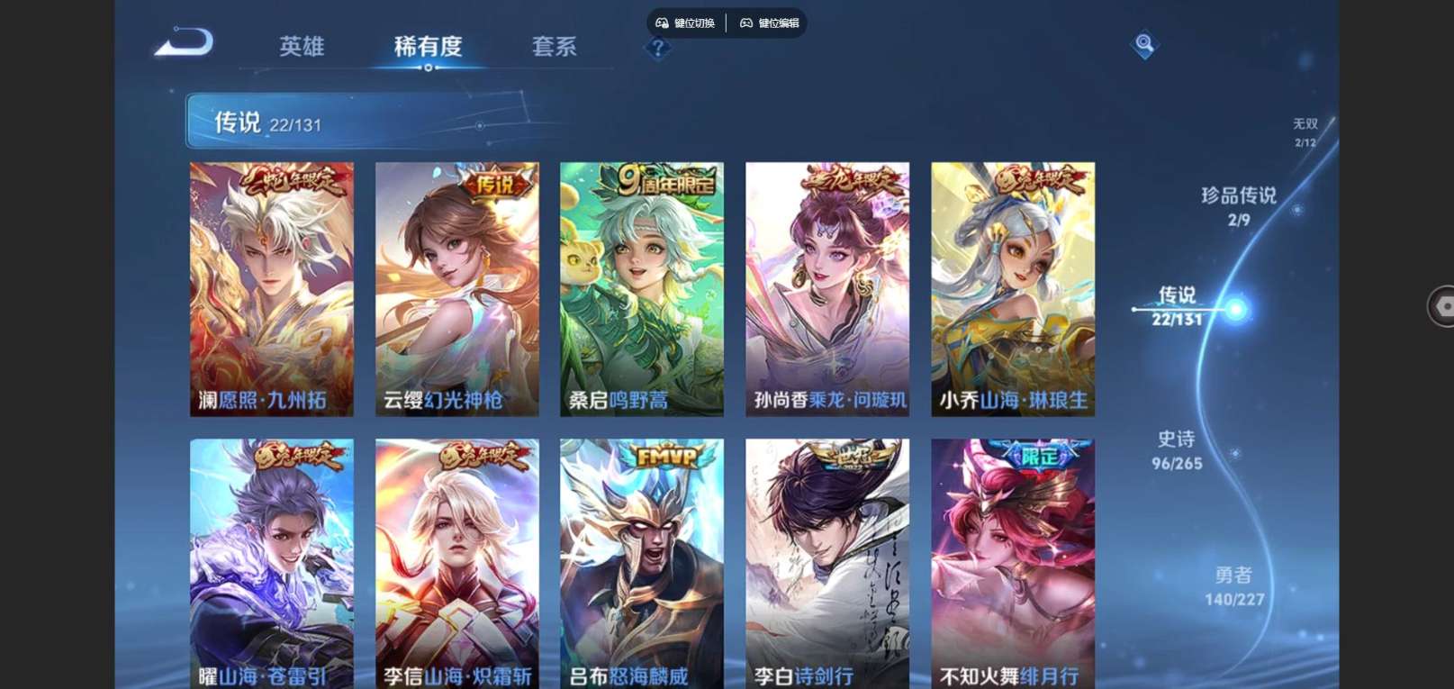 126英雄-341皮肤-V9-2典藏2无双2珍品传说22传说 对抗路31段 3星传说玉鸾吟 幽冥火