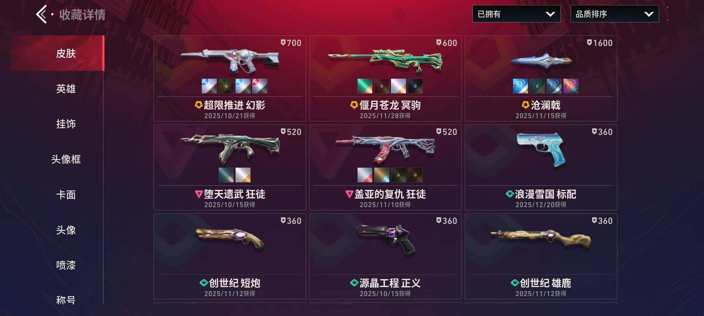 【狂徒】:狂徒-盖亚的复仇,狂徒-堕天遗武【幻影】:幻影-超限推进【近战武