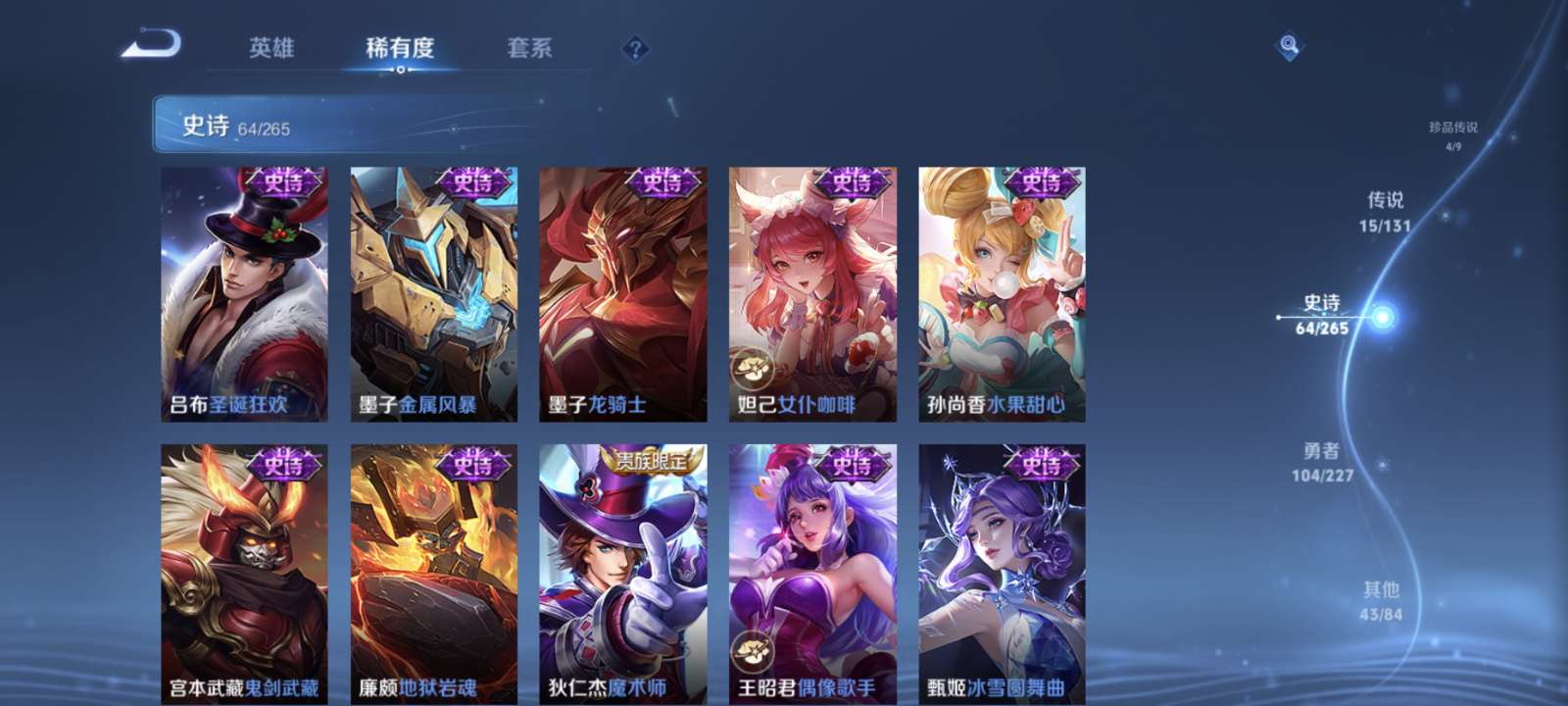 皮肤234 英雄126 最强王者 荣耀典藏2 无双皮肤2 珍品传说3 传说15 其他皮肤86-2典藏2无双4珍品传说