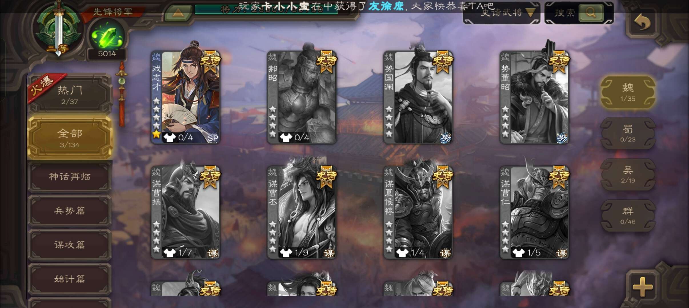 史诗武将数量: