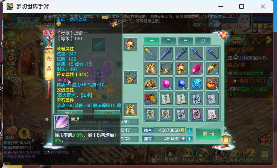 法师打不出4孔帽子,没心思玩了,有神兽仙兽都带了2饰品。法师满修,账号内还有个110的武僧。还有半年左右就可以换绑定手机