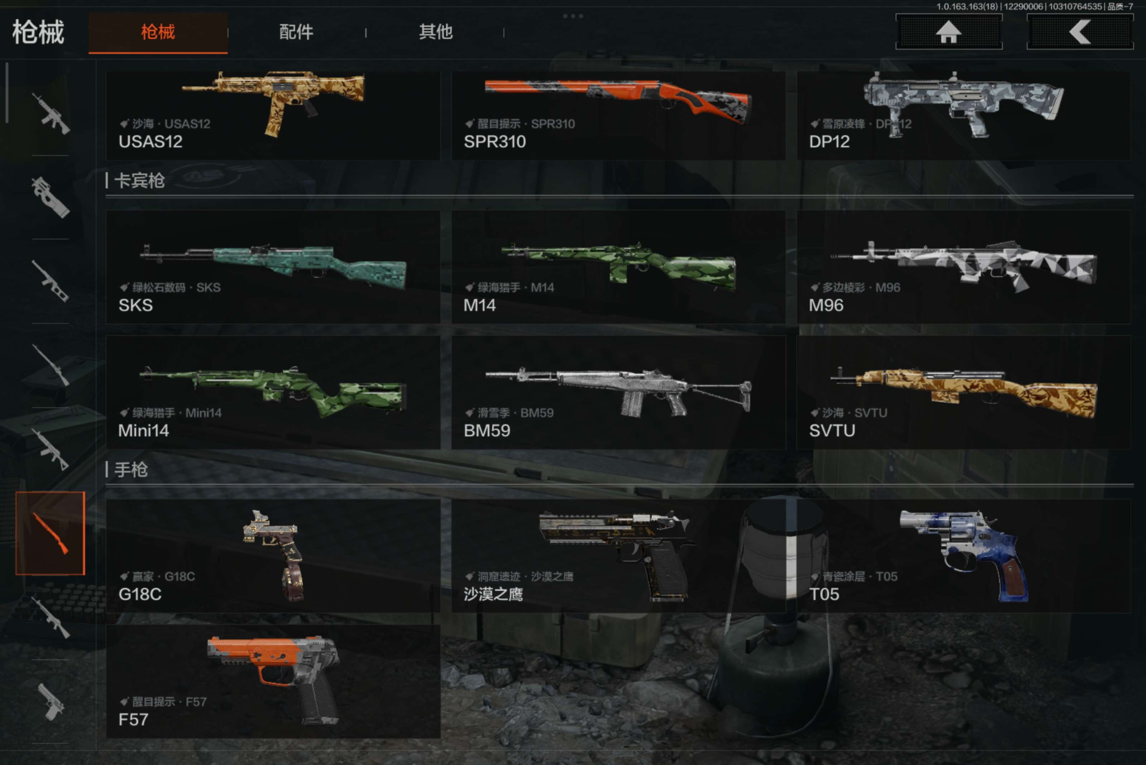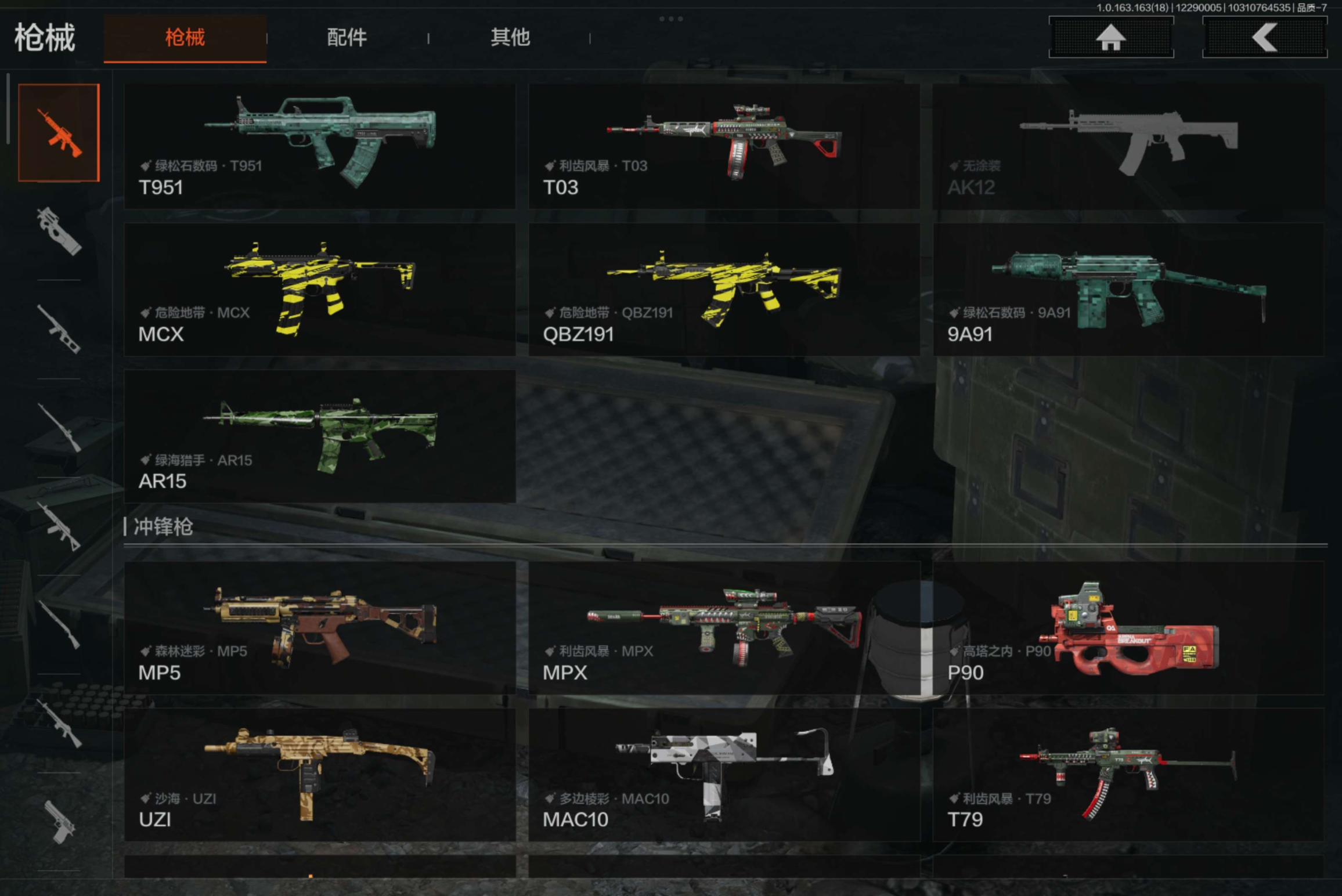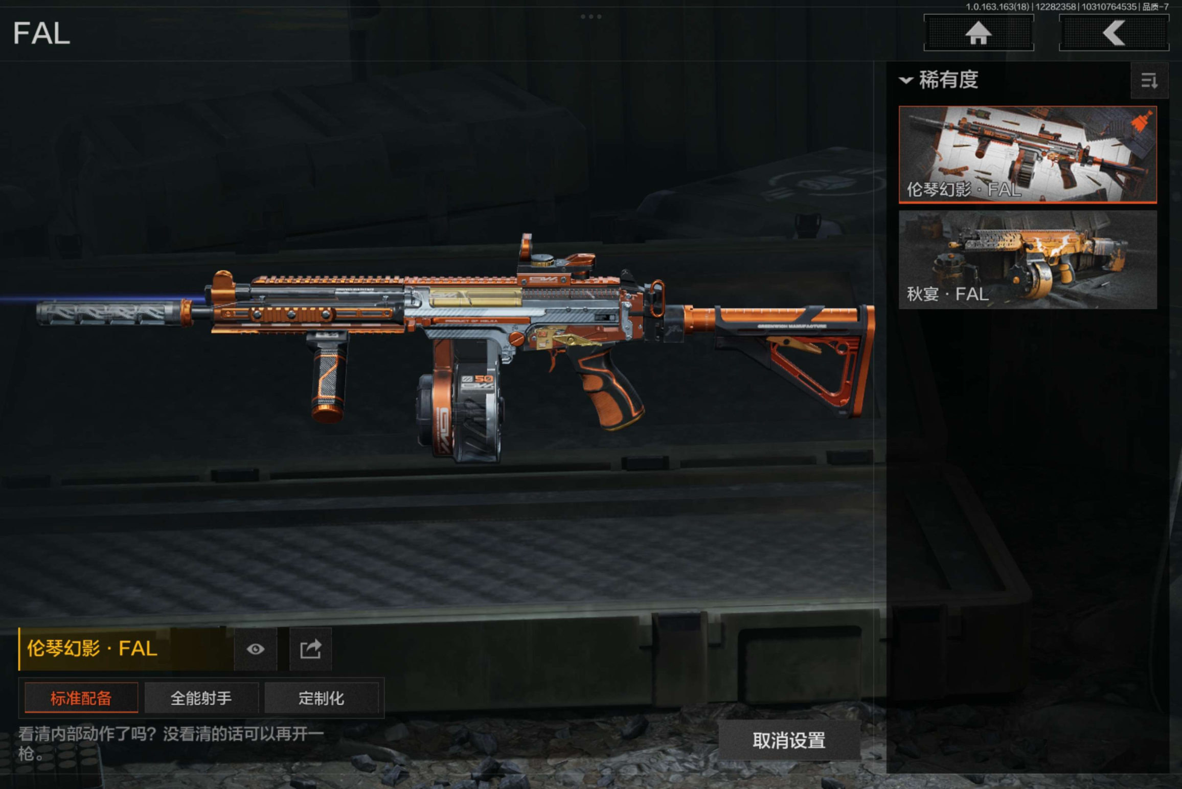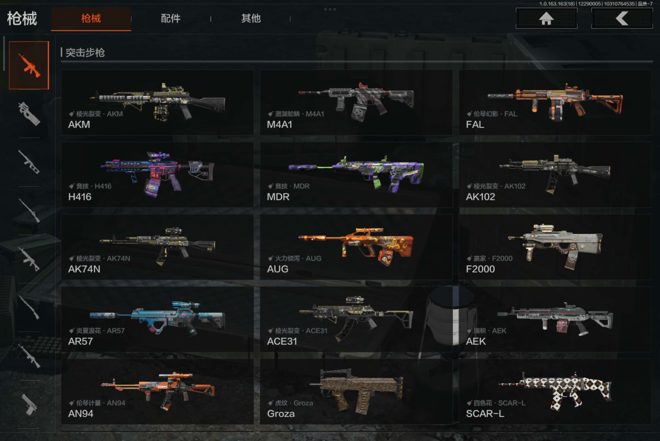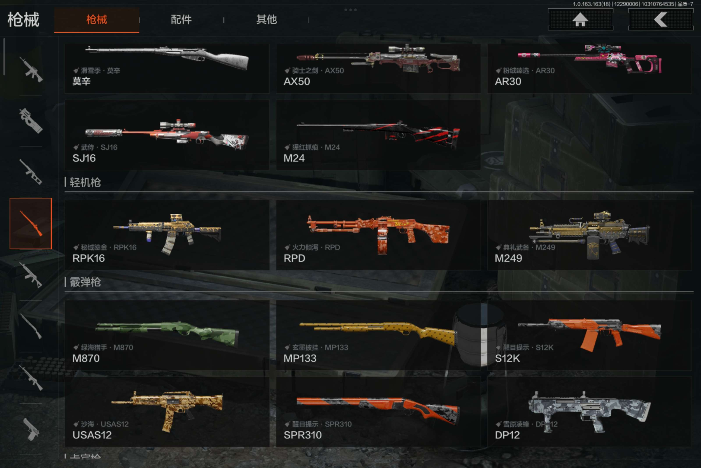 金枪:伦琴幻影FAL,竞技H416,旗帜AEK,利齿风暴MPX,旧王圣谕VSS,棱光裂变QBU191,骑士之剑AX50