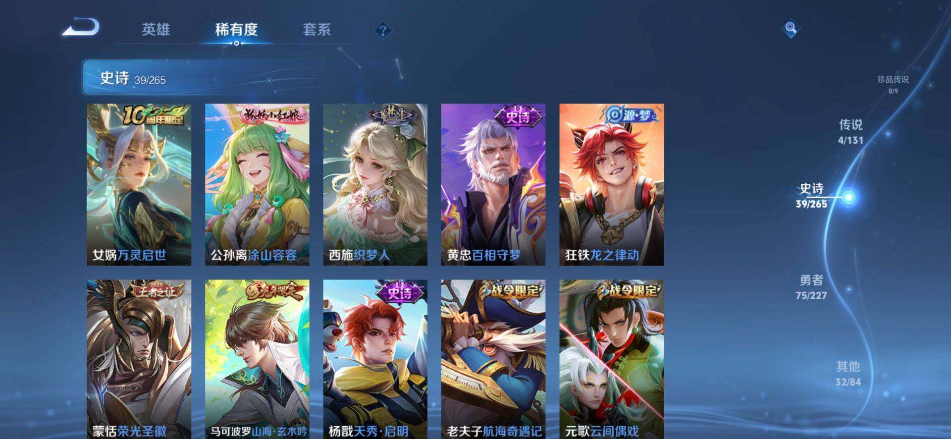 【150皮肤4传说 澜愿照九州拓 典韦战鼓燎原 地狱火】安卓Q-V6-最强王者段位-124英雄-150皮肤-4传说-39史诗